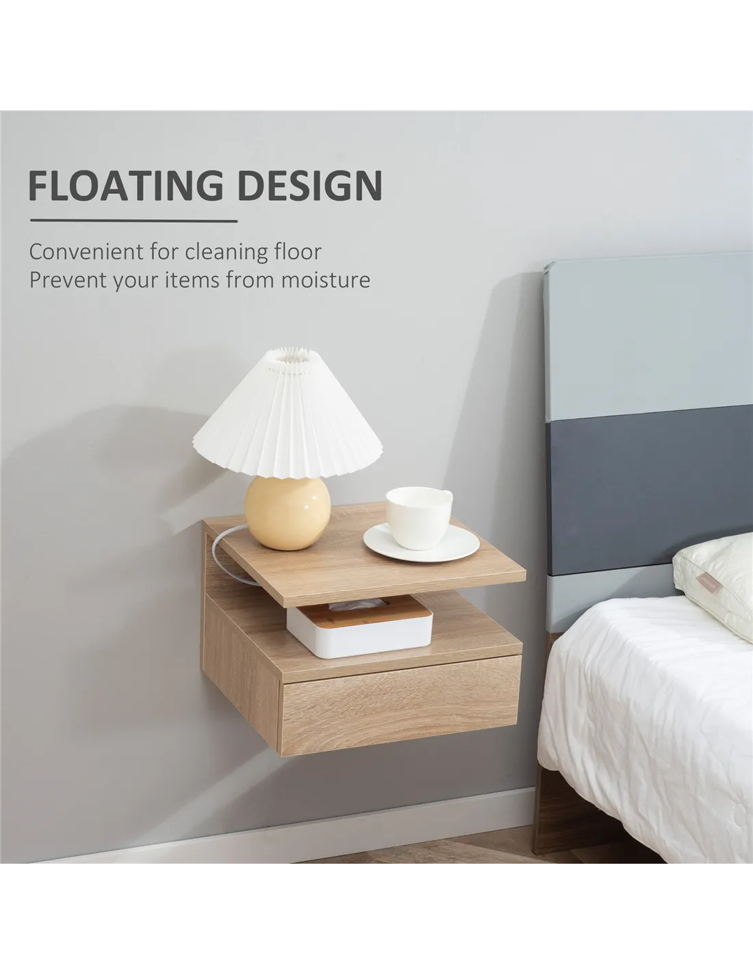 HOMCOM Set of Two Floating Bedside Tables - Oak Tone