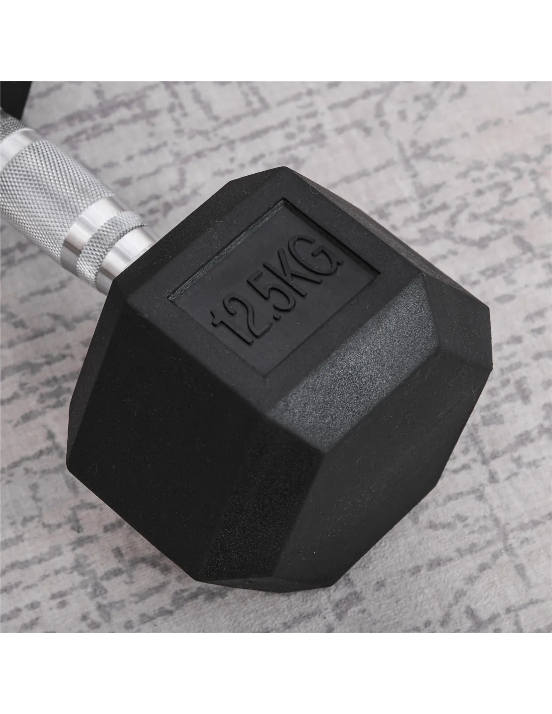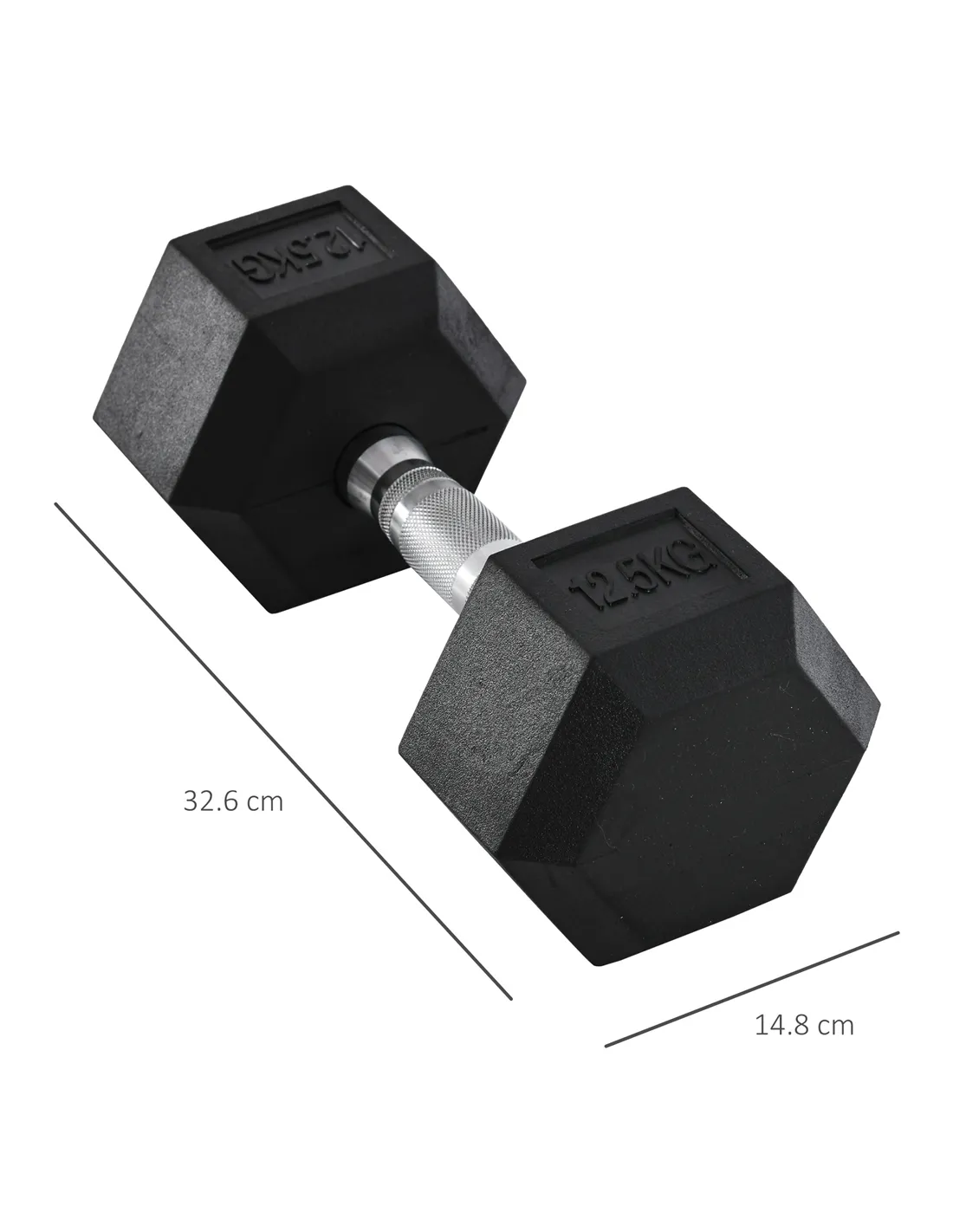 HOMCOM 12.5KG Single Rubber Hex Dumbbell Portable Hand Weights Dumbbell Home Gym