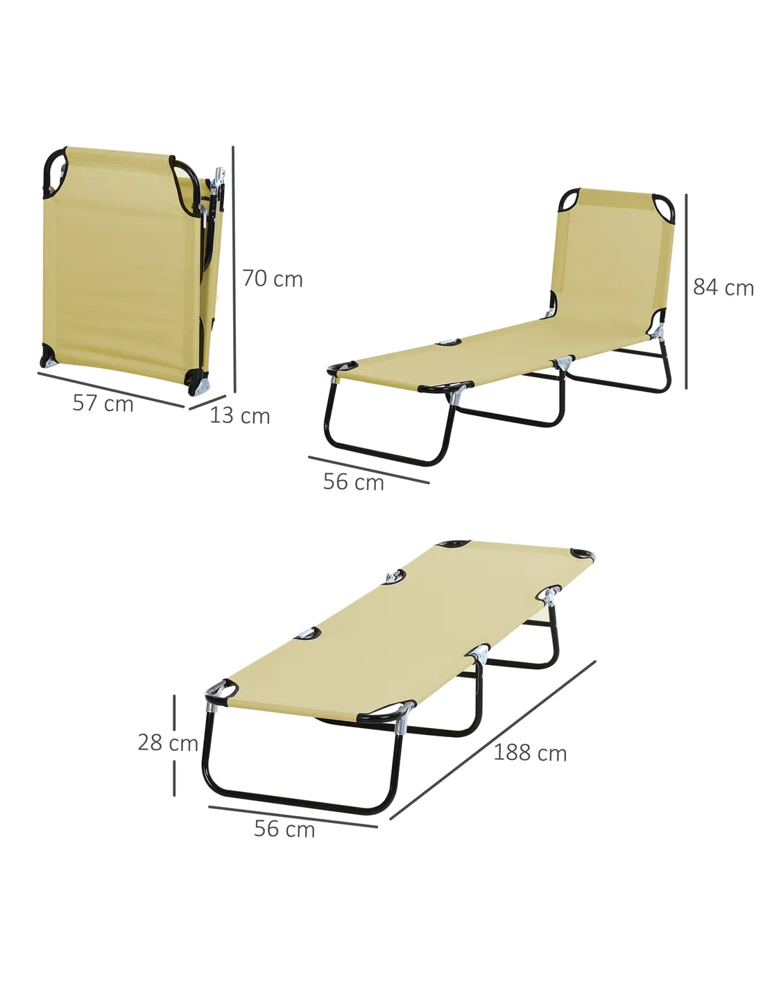 Our Outsunny folding sun lounger is strong, comfortable and will support you all afternoon long. Reinforced metal frames keep you supported - fabric seats are fitted to keep you comfortable. Three long legs keep the lounger balanced. The back can be set to five different positions - choose a position you prefer.