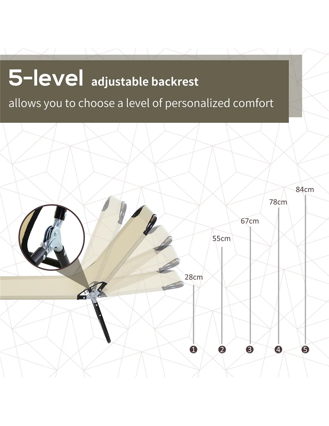 - Use it by the poolside to unwind after a swim, with five backrest positions allowing you to find the perfect angle for relaxation.