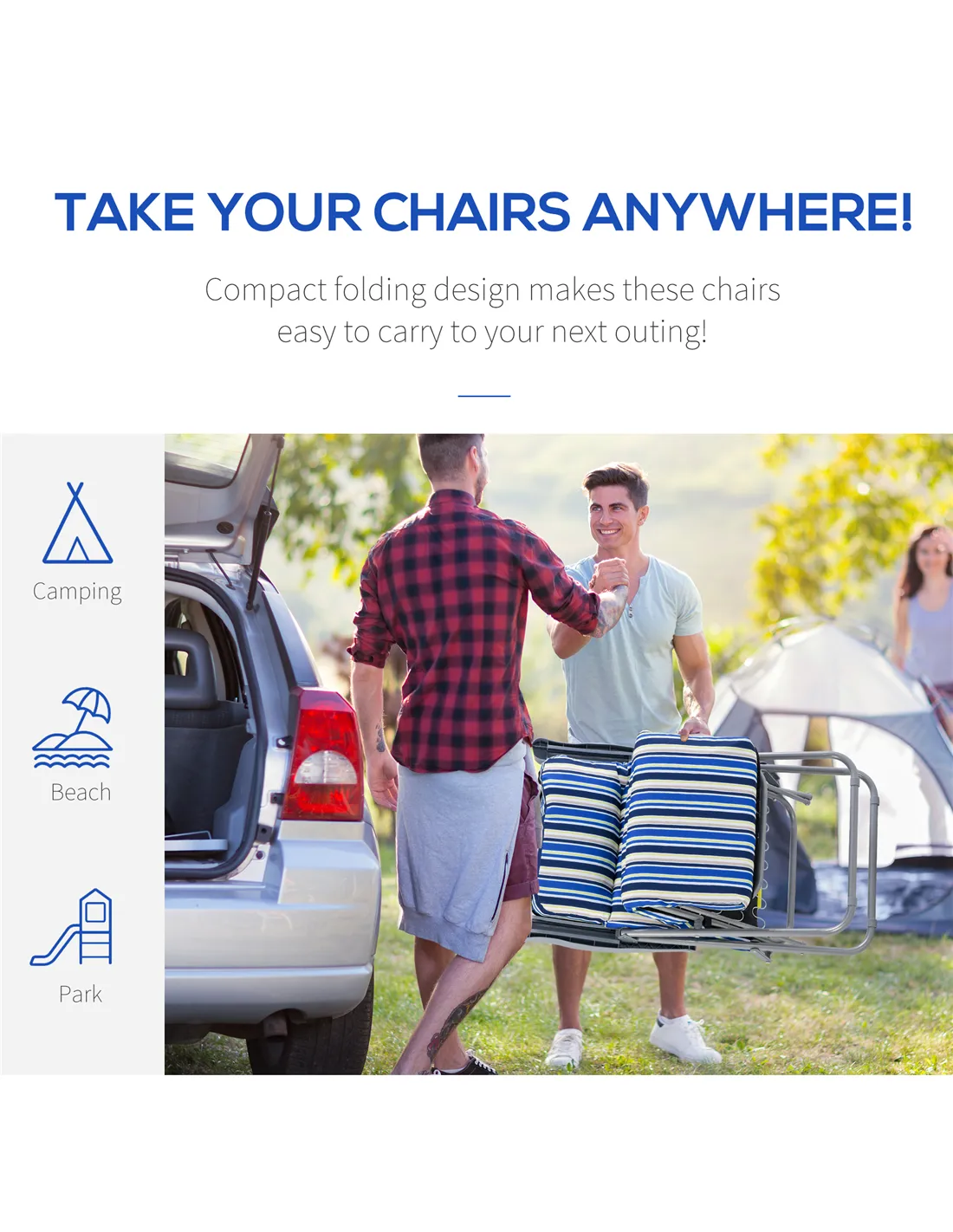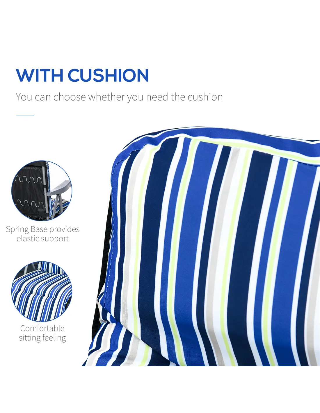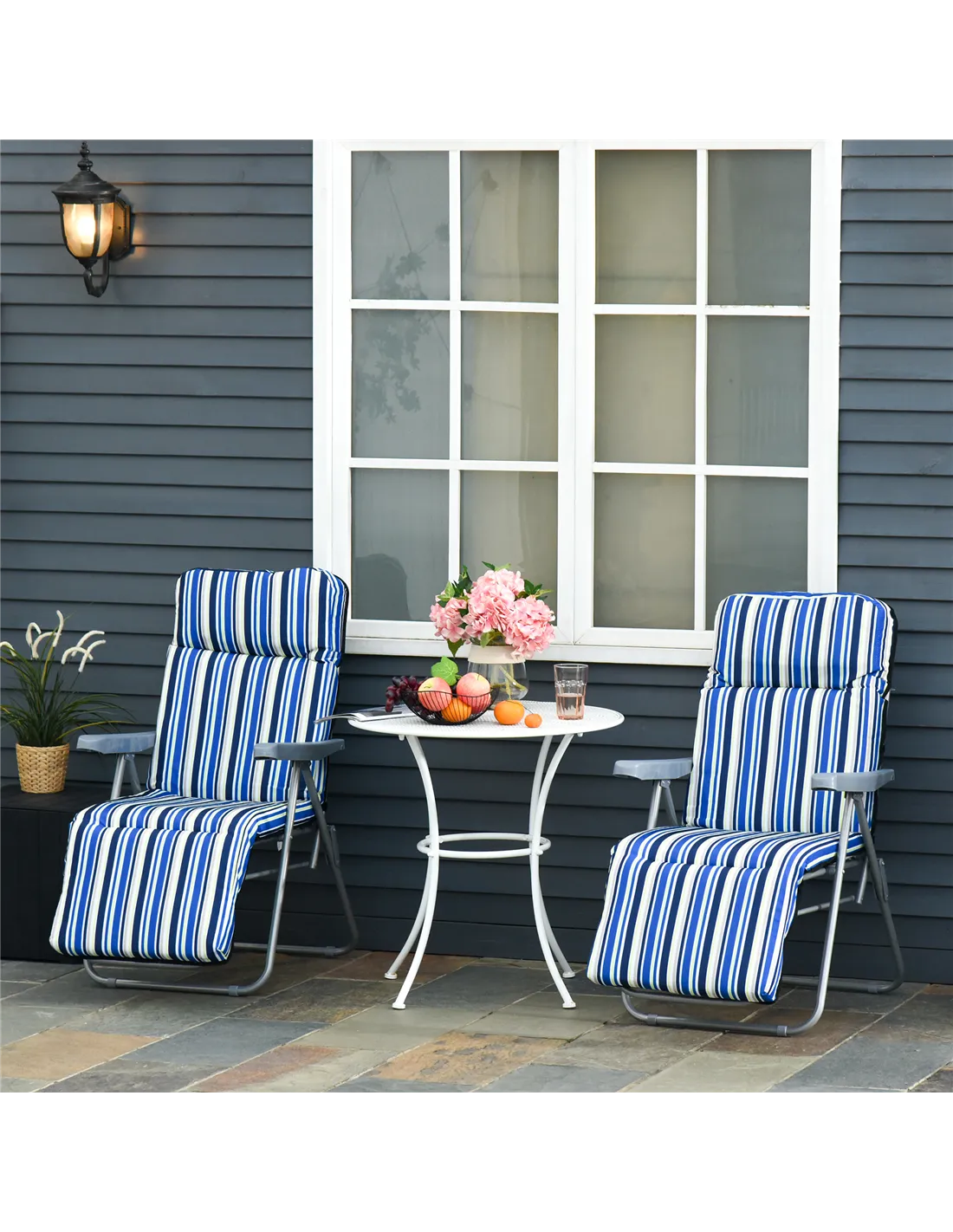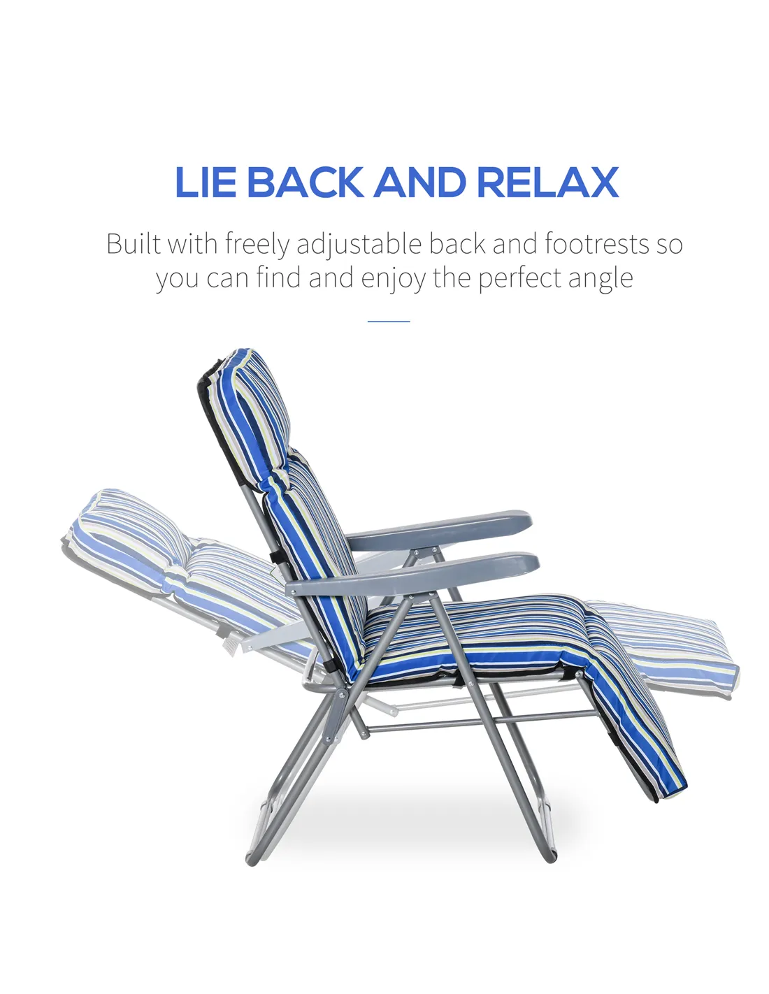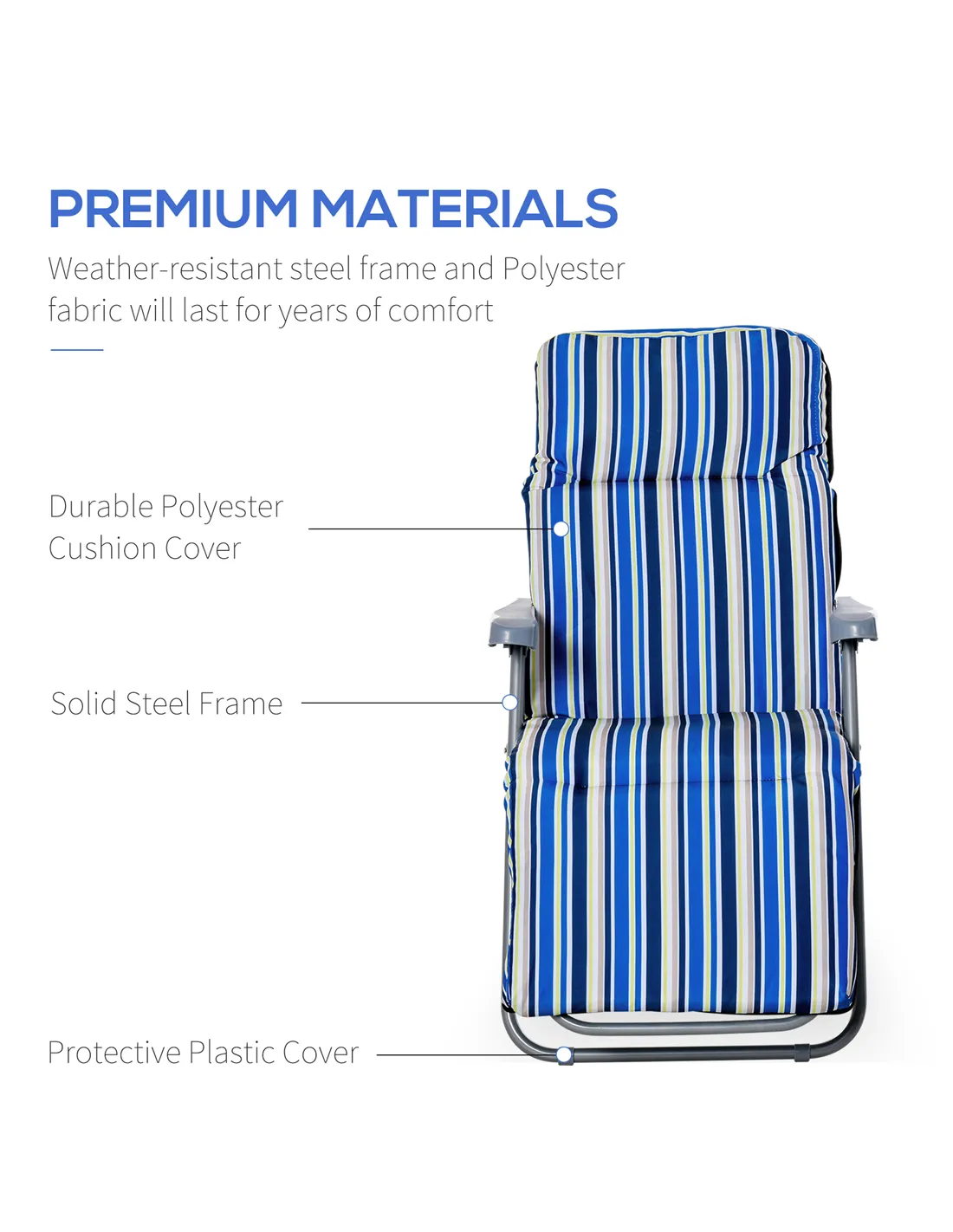 Outsunny Reclining Garden Chair Set of 2, 5-Level Adjustable Zero Gravity Chairs with Cushions, Folding Sun Lounger Garden Recliner Chairs with Armrests for Outdoor, Patio, Blue Stripe