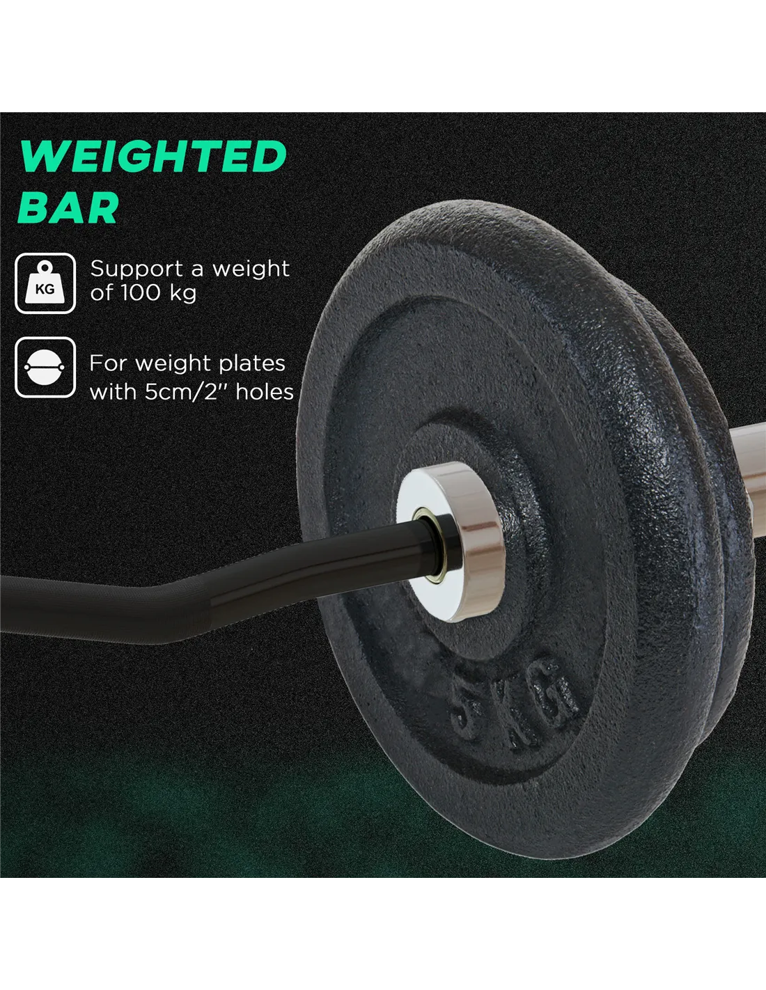 - Thanks to its compatibility with 5cm weight plates and a maximum load of 100kg, it suits both beginners and experienced lifters aiming to progress gradually.