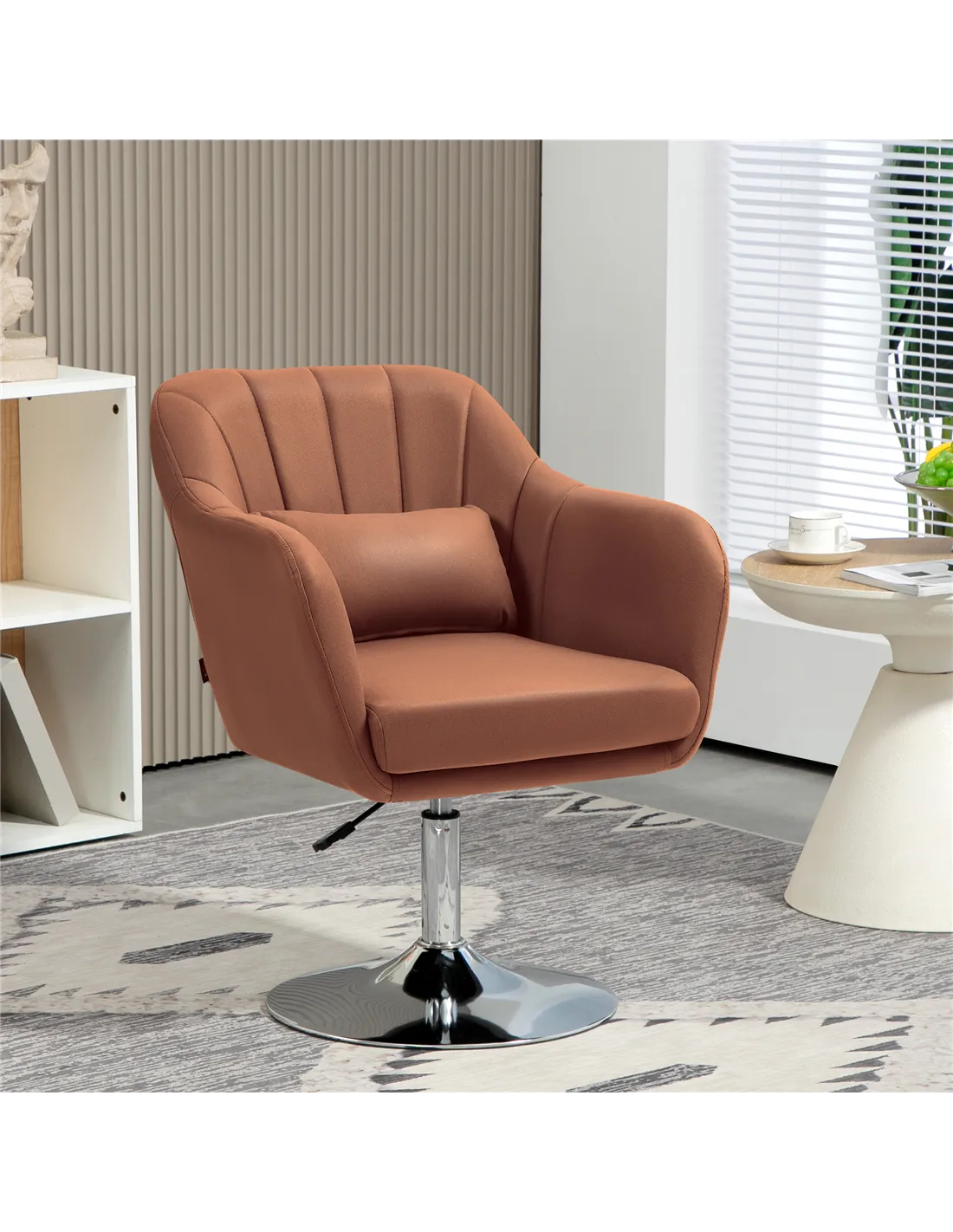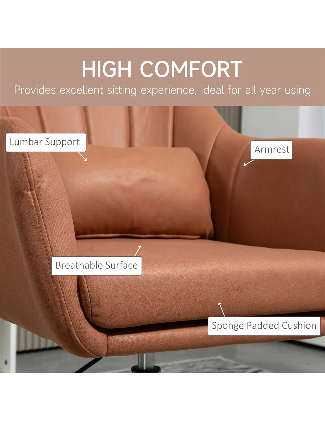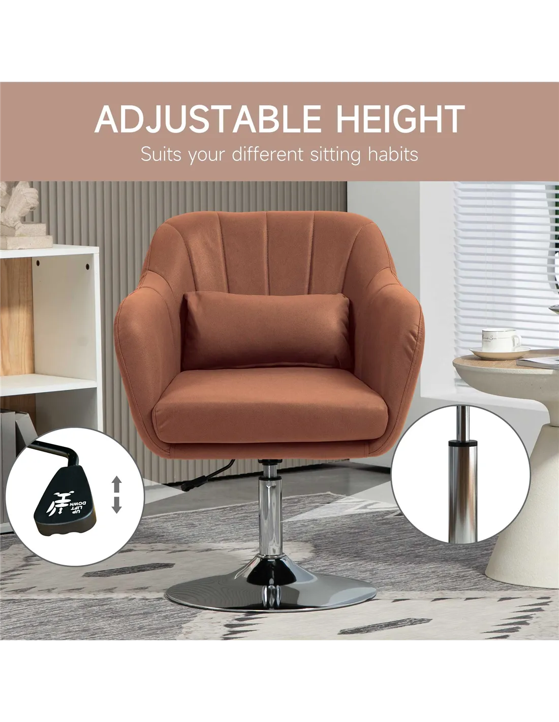 HOMCOM Swivel Microfibre Accent Chair for Living Room Contemporary Vanity Armchair with Adjustable Height Thick Cushion Lumbar Support Armrest for Bedroom Office Brown