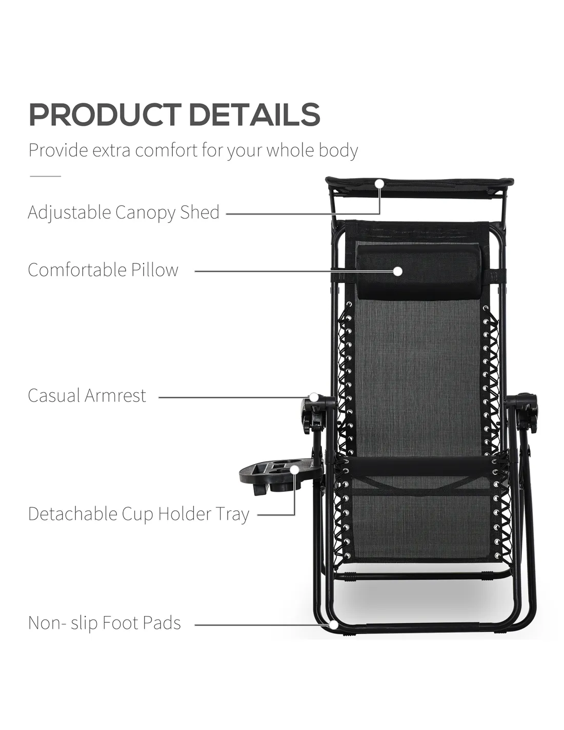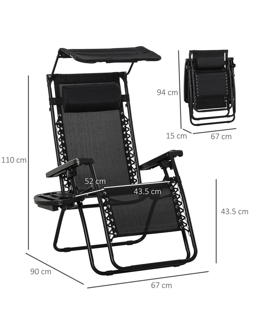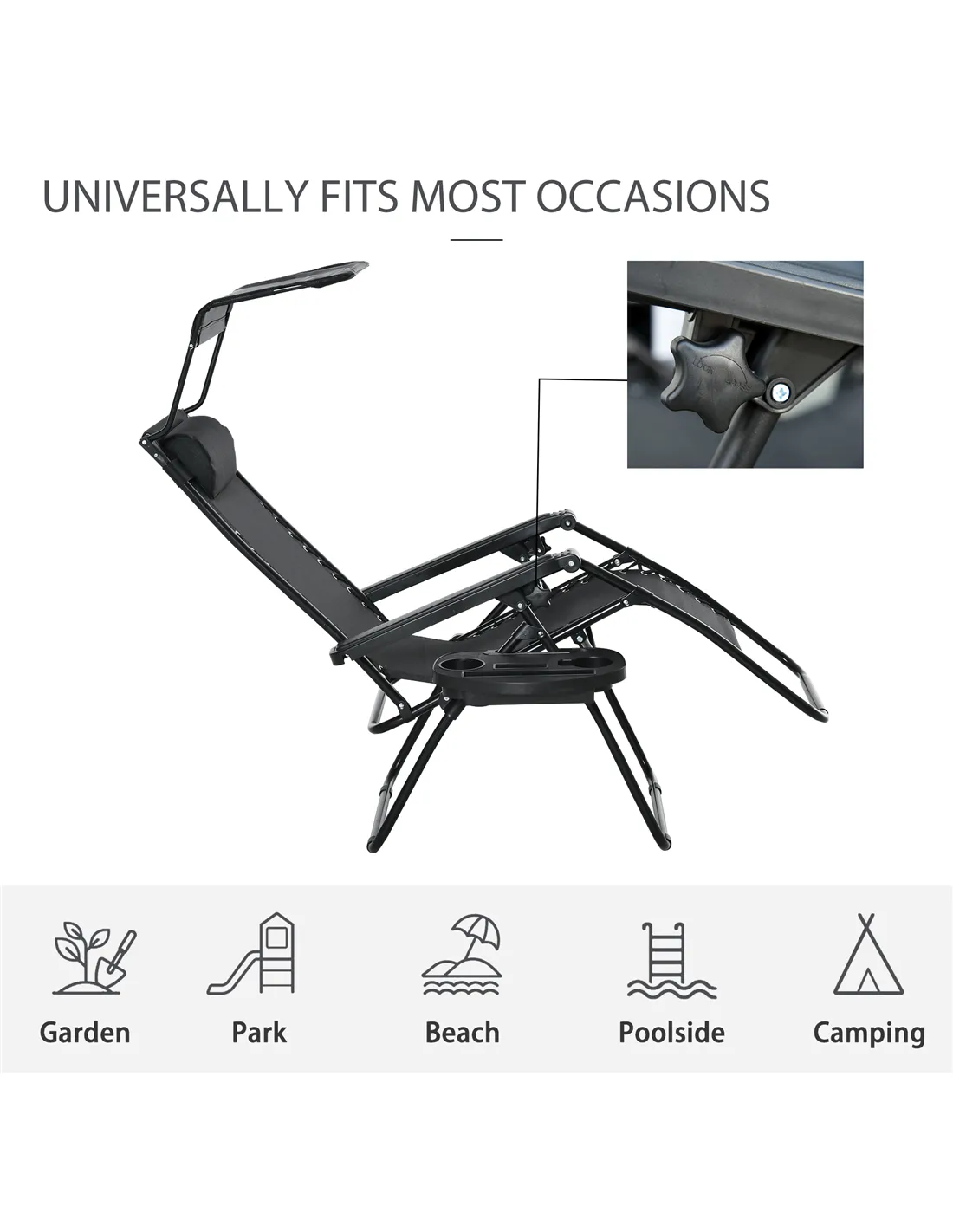 The Outsunny Folding Zero Gravity Sun Lounger with Sun Canopy is perfect for enhancing your outdoor relaxation experience. Ideal for garden patios, balconies, or by the poolside, this lounger offers a weightless reclining position that evenly supports your body, helping to relieve pressure and promote comfort. The adjustable canopy provides excellent shade during sunny days, making it suitable for long afternoons spent reading or sunbathing. Thanks to its foldable design, it is easy to transport for picnics, camping trips, or beach outings, allowing you to enjoy comfort wherever you go. The detachable side tray keeps essentials like drinks, books, or mobile devices within easy reach, adding convenience to your leisure time.