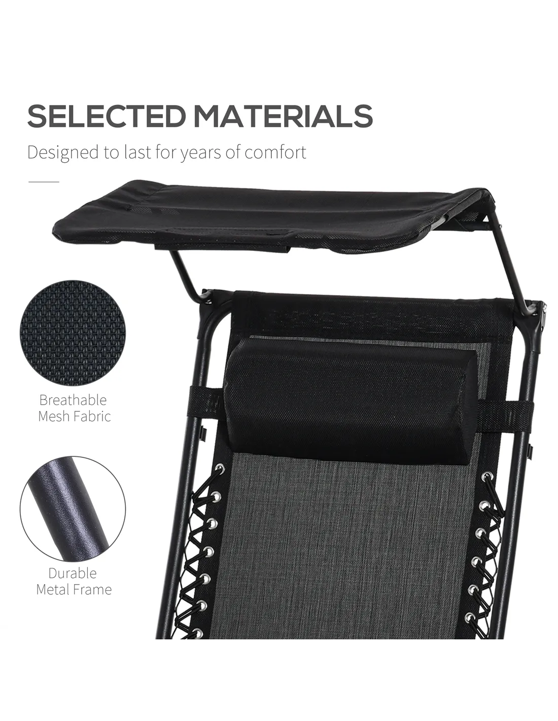 Outsunny Folding Zero Gravity Sun Lounger, with Sun Canopy - Black