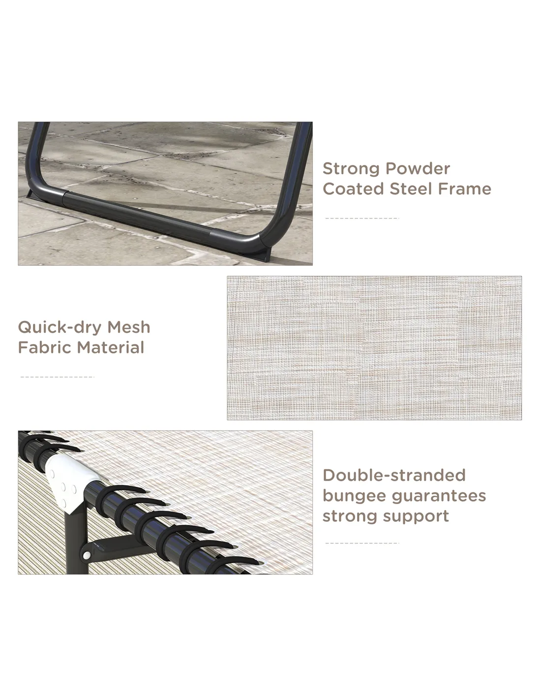 Based on reviews from UK customers, the Outsunny foldable sun lounger is praised for its sturdy steel frame and ease of transport. Many highlight the four-level adjustable backrest as a key feature that enhances comfort whether sitting upright or reclining. Users appreciate the breathable mesh fabric, which keeps the seat cool during warm weather. The ergonomic design with elastic rope suspension has been noted to reduce muscle tension, making it a favourite for extended outdoor use. Overall, buyers commend the lounger’s durability and versatility, making it a reliable choice for garden, camping, and beach use.