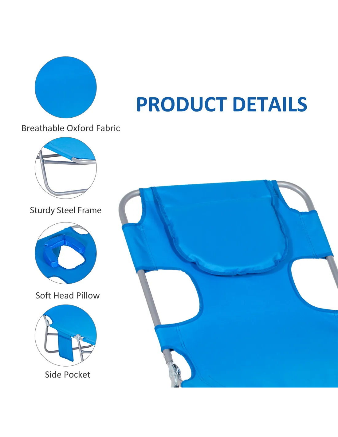 Outsunny Foldable Sun Lounger with Reading Hole - Blue
