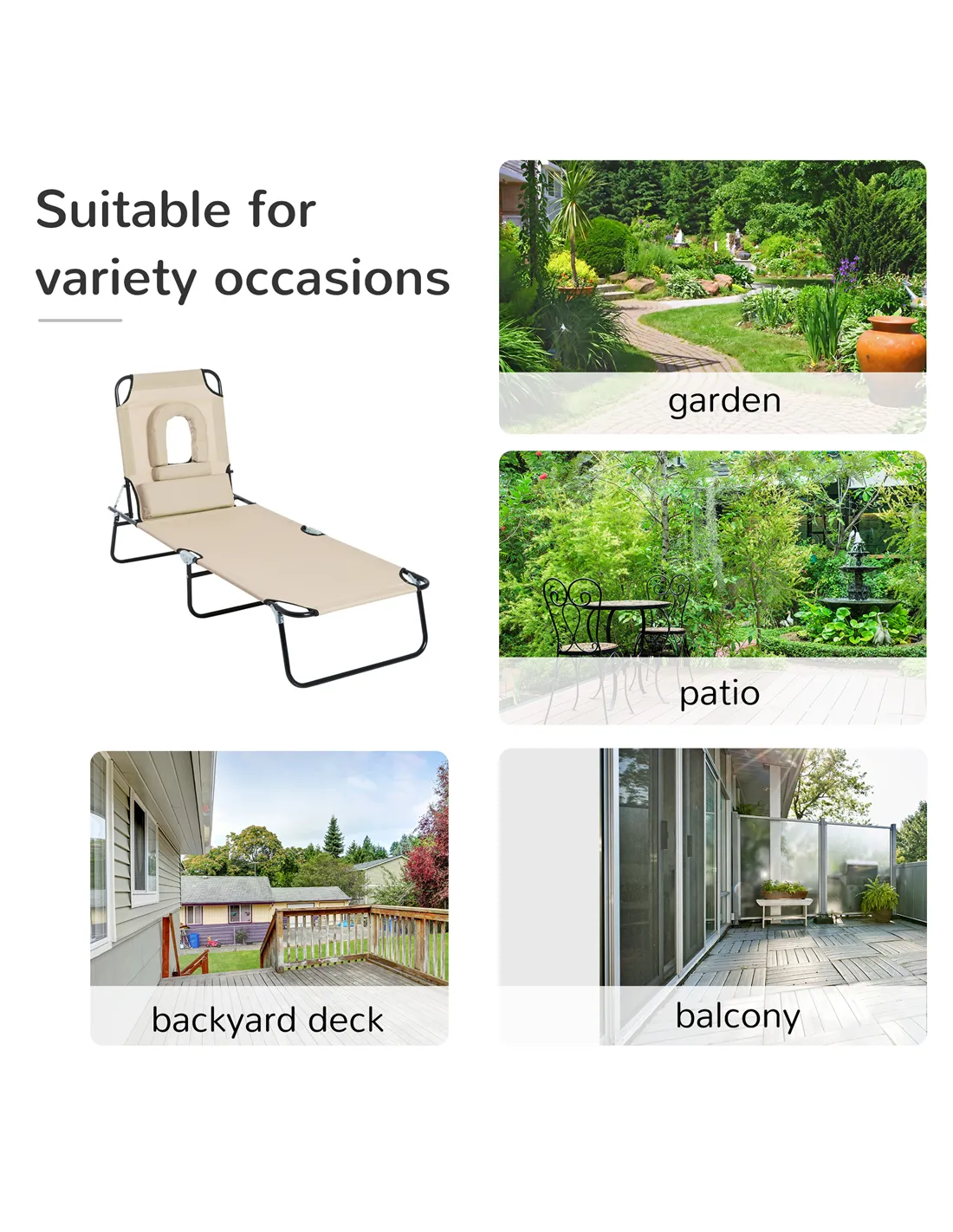 - Use it for outdoor reading or sunbathing, with the adjustable backrest allowing you to find the perfect reclining angle for ultimate relaxation.