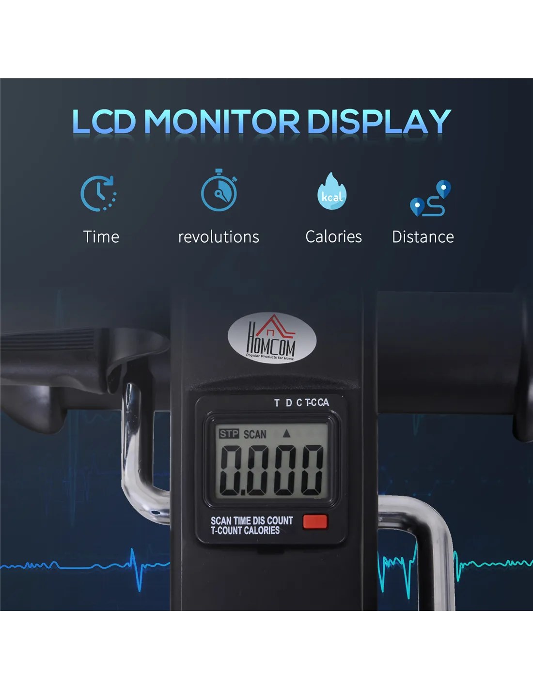 Discover a gentle recovery path with the HOMCOM under desk exerciser, great for beginners and post-surgery rehab. This thoughtfully designed equipment offers a low-impact workout, ideal for maintaining joint health. The large, easy-to-read LCD screen keeps you informed of your progress, displaying time, speed, count, and calories burned. With adjustable resistance and non-slip pedal straps, it offers a safe and tailored workout, making it an excellent companion for your rehabilitation journey