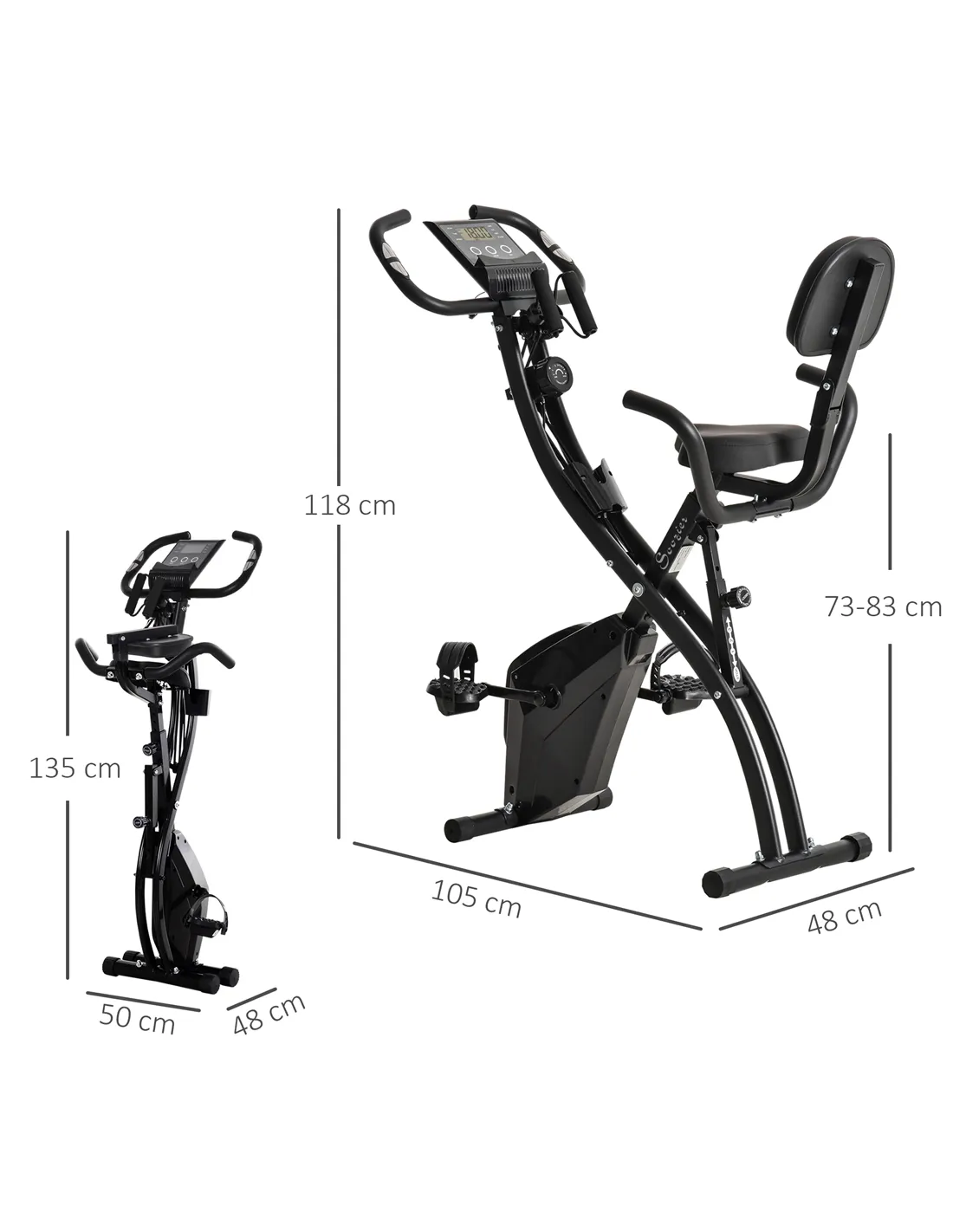 The HOMCOM 2-in-1 Folding Exercise Bike is perfect for those seeking a versatile fitness solution at home. Its dual upright and recumbent design allows users to switch positions easily, catering to different workout preferences and comfort levels. Ideal for living rooms, home gyms, or even a spare bedroom, this compact bike folds neatly for convenient storage, making it suitable for smaller spaces. The integrated arm resistance bands provide an effective upper body workout, complementing the cycling exercise to tone arms and shoulders. With the built-in pulse sensor and LCD monitor, users can track their progress in real time, motivating consistent cardio sessions. The phone holder keeps your device accessible, so you can enjoy entertainment or follow workout apps while exercising.