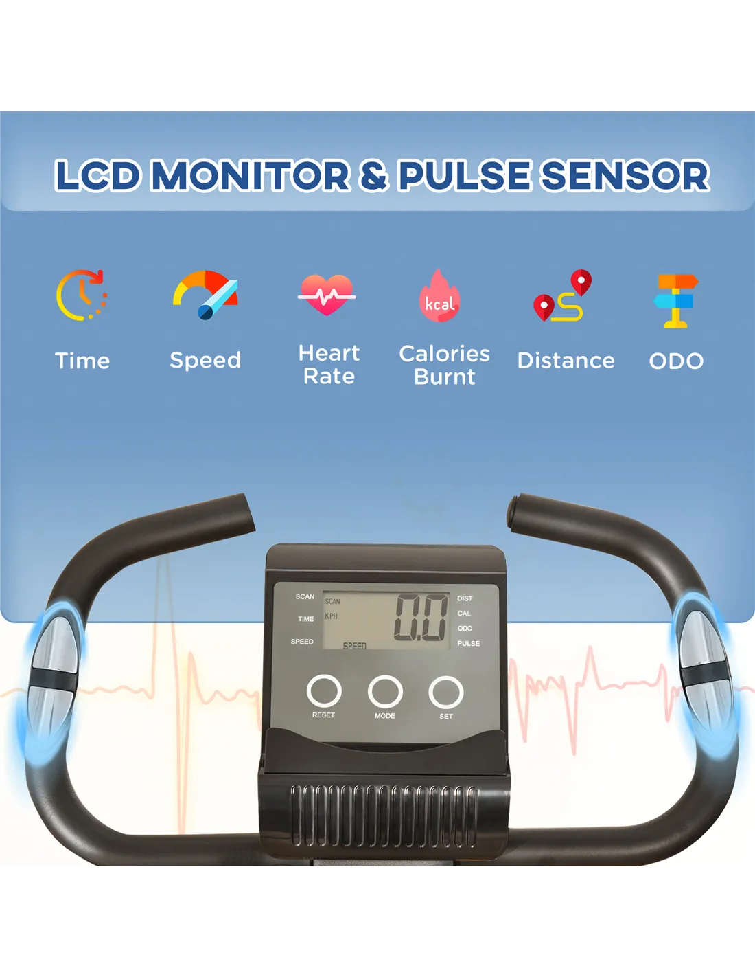 - LCD monitor tracks time, speed, distance and calories burned