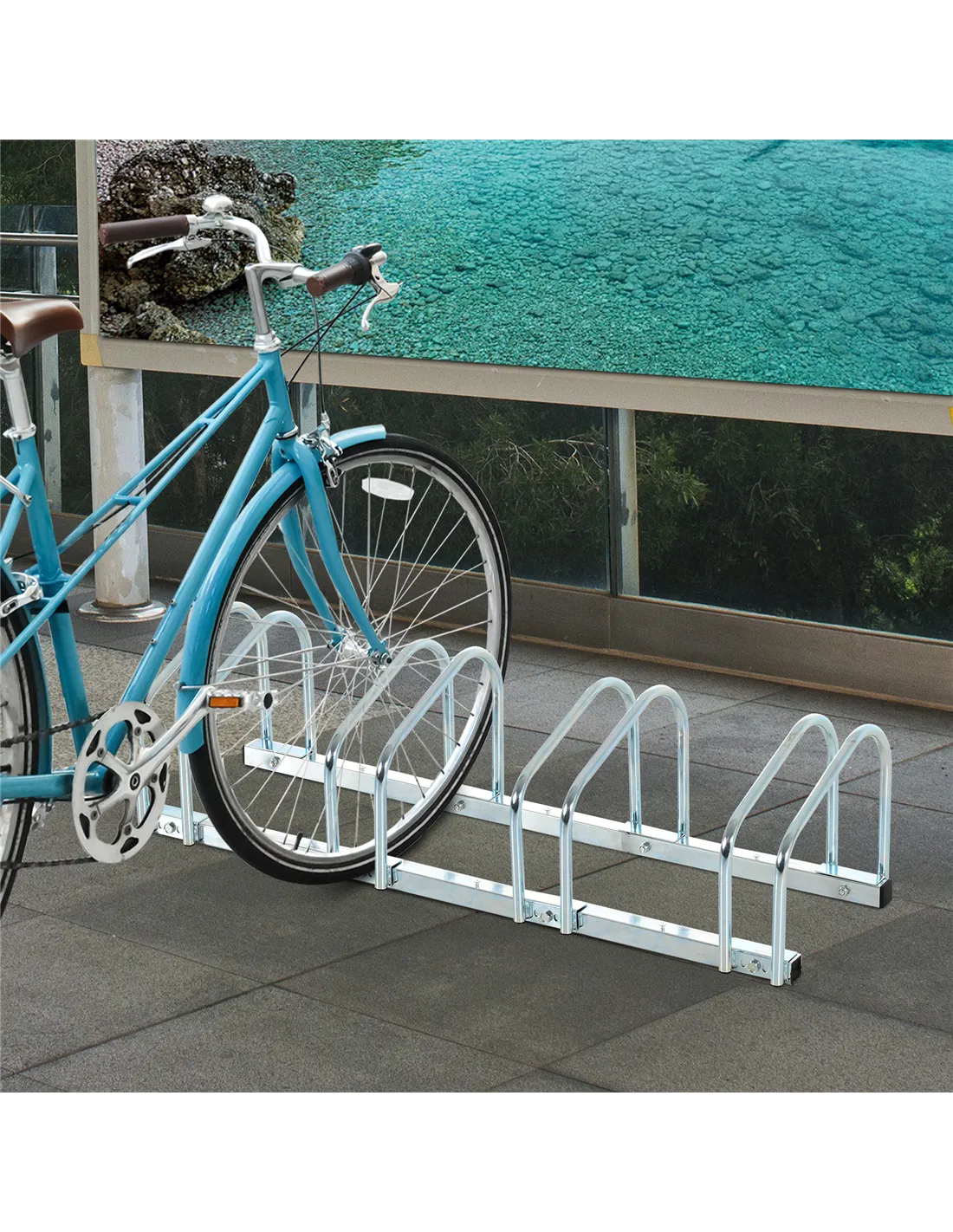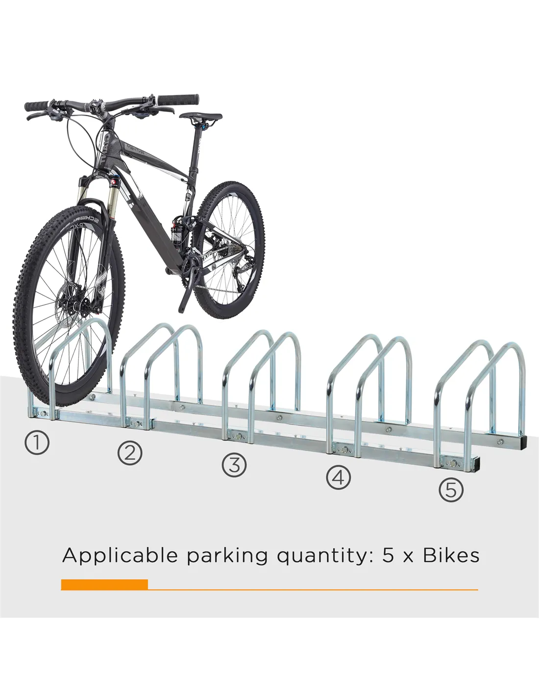 HOMCOM Bike Stand Parking Rack Floor or Wall Mount Bicycle Cycle Storage Locking Stand (5 Racks, Silver)