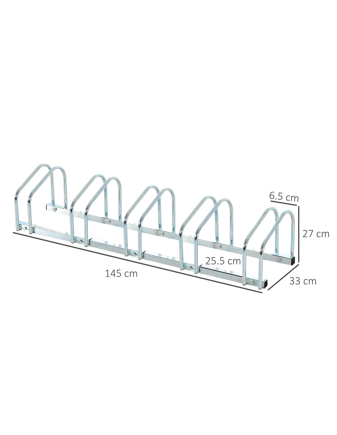 Store bicycles securely with this HOMCOM bike floor stand, which can hold up to five bikes. Great for sheds, garages and gardens, it'll keep your bikes upright, avoiding damage and scratches to its frame. Made from heavy-duty steel, the bike rack is covered in powder-coating, suitable for outdoors. For smaller spaces, you can detach the stand, so it holds just one bike. A great way to keep your bikes organised, whilst saving space.