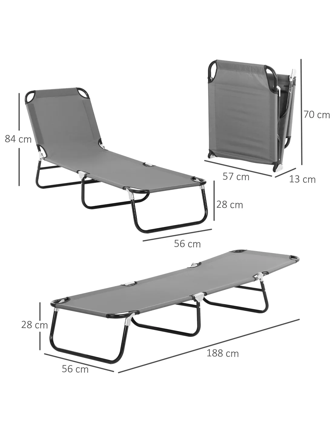 Our Outsunny folding sun lounger is strong, comfortable and will support you all afternoon long. Reinforced metal frames keep you supported - fabric seats are fitted to keep you comfortable. Three long legs keep the lounger balanced. The back can be set to five different positions - choose a position you prefer.