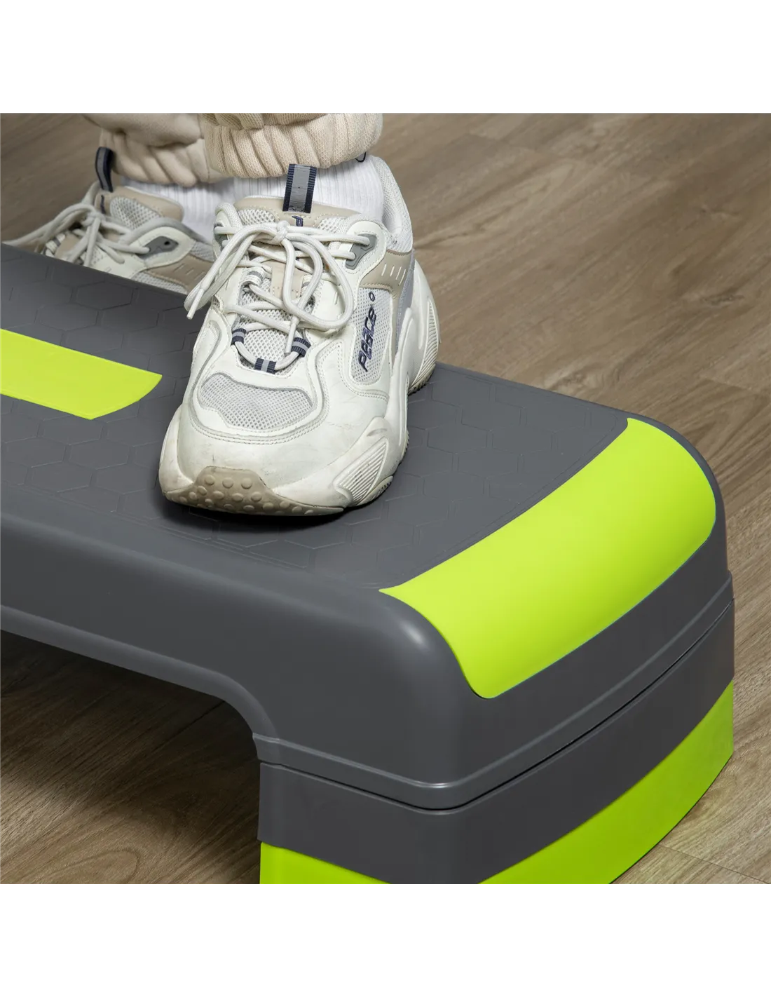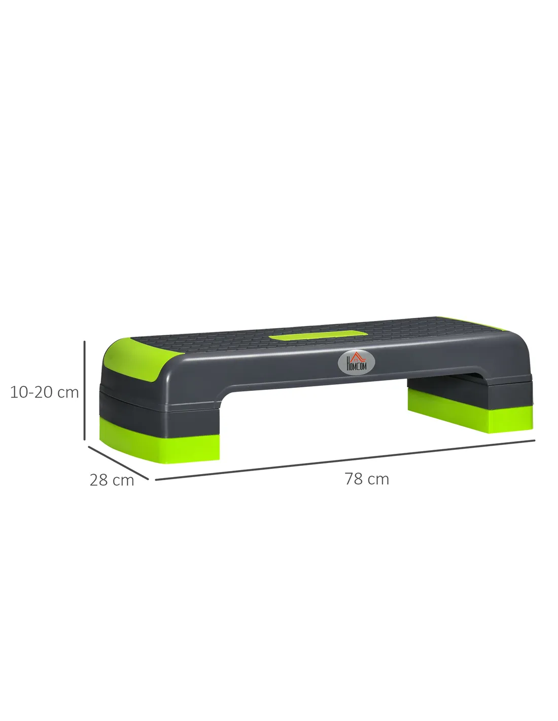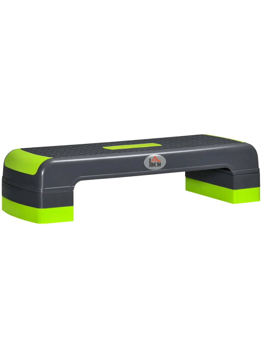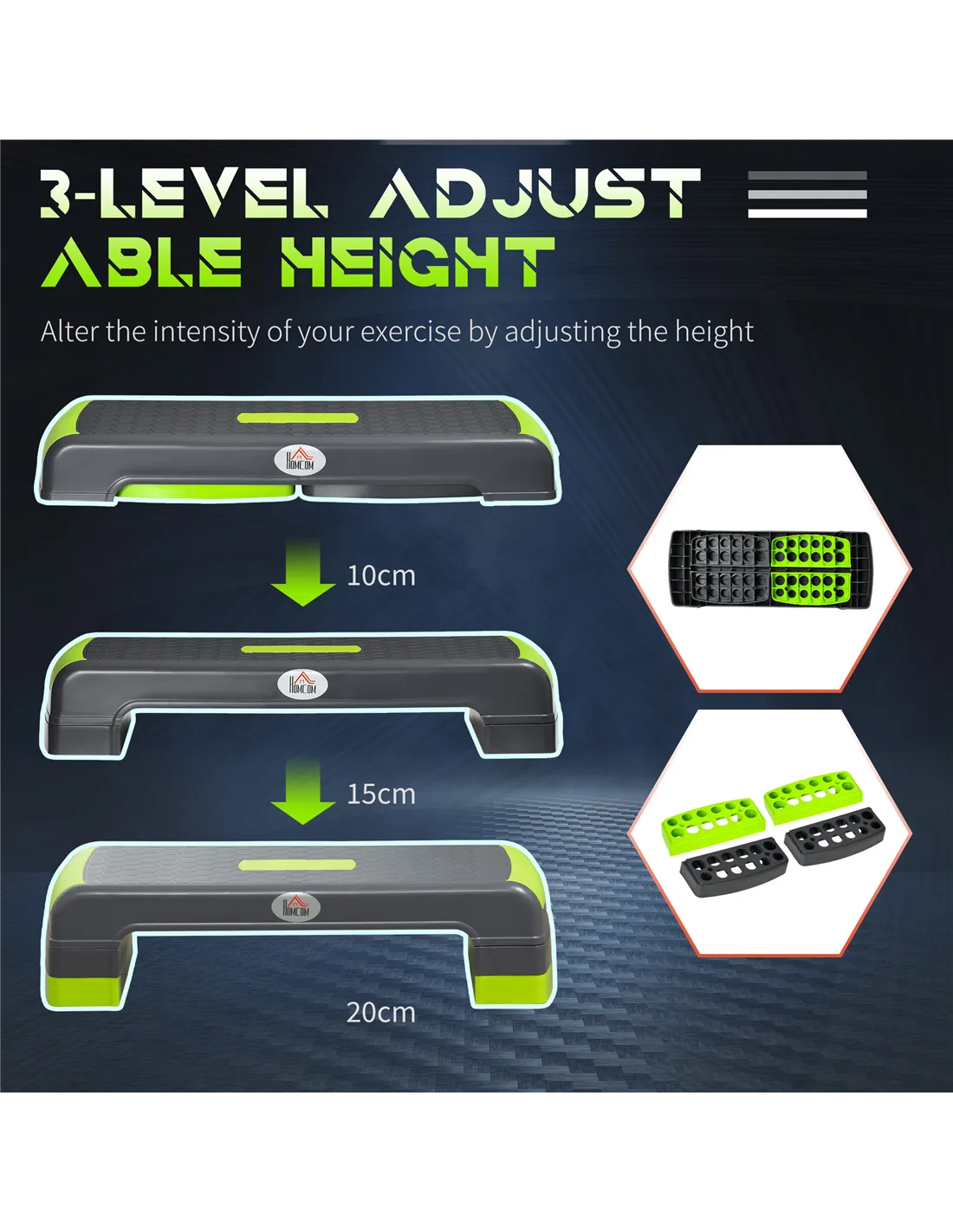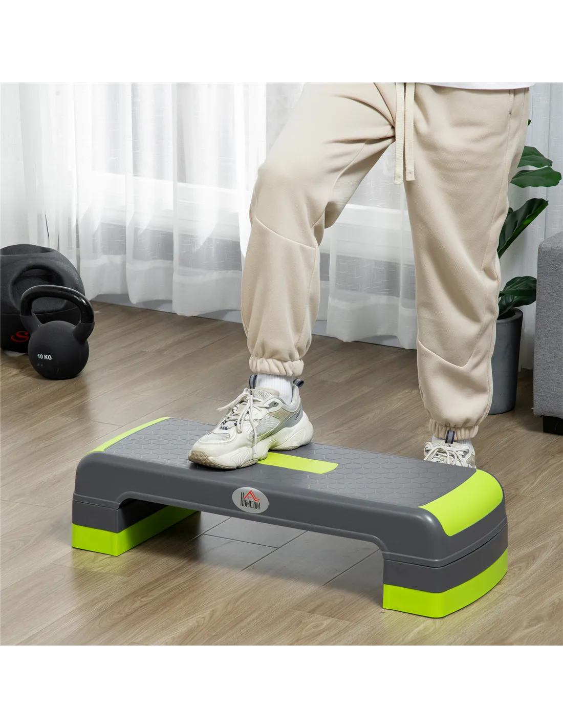 HOMCOM Aerobic Step with 3-Level Adjustable Heights for Home, Office Exercise, Grey and Green