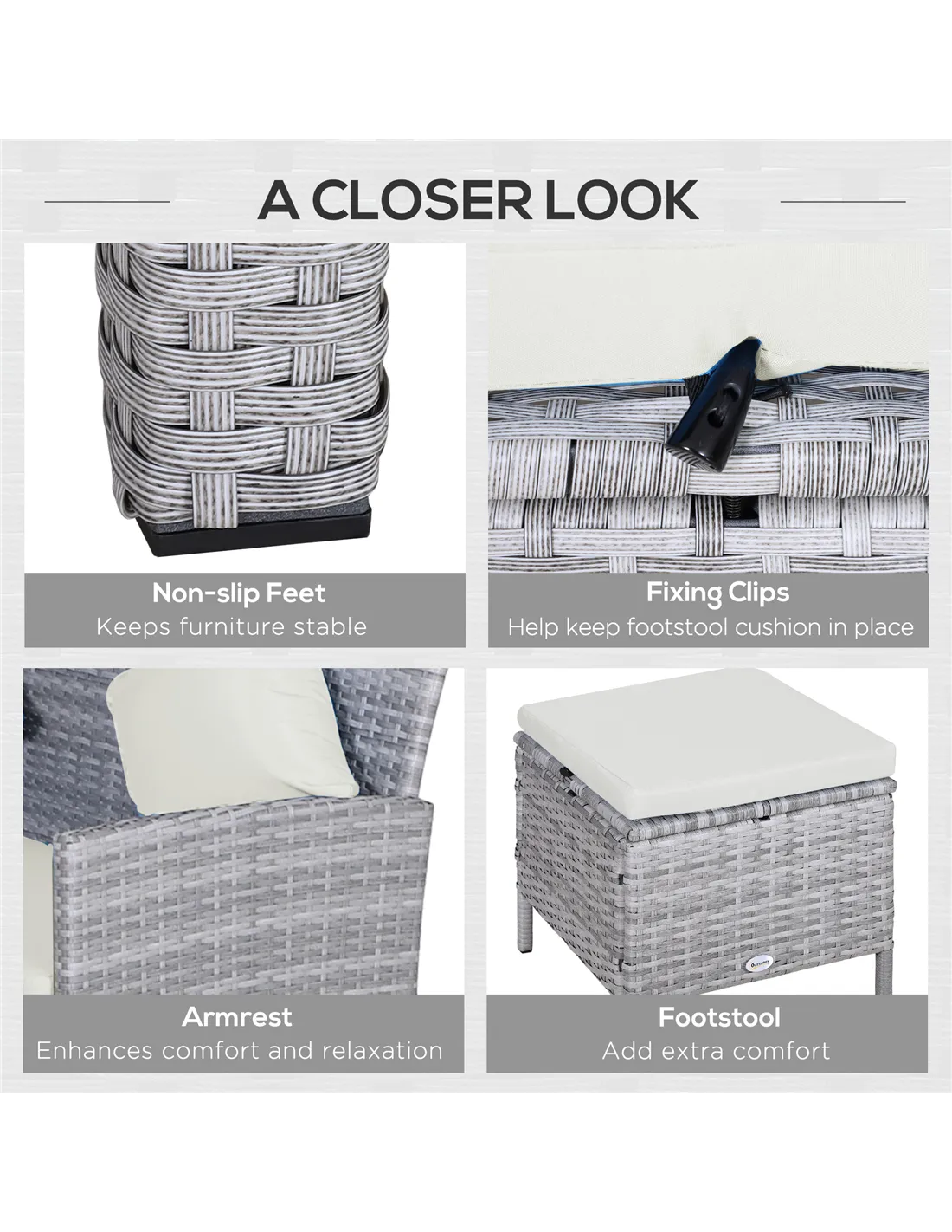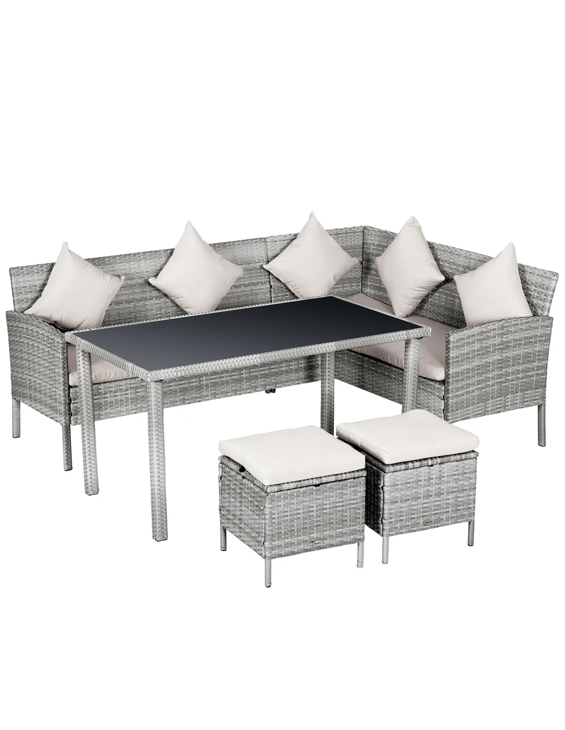 Outsunny 6-Seater Rattan Dining Set Sofa Table Footstool Outdoor w/ Cushion Garden Furniture