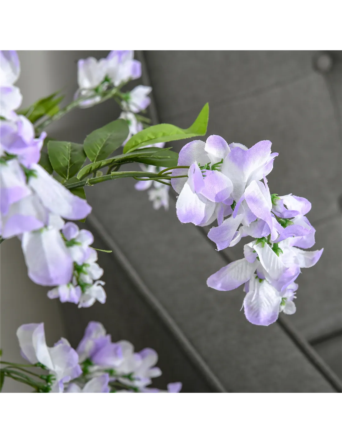 - Use as a decorative feature for events or seasonal displays, adding elegance with lifelike wisteria blooms.