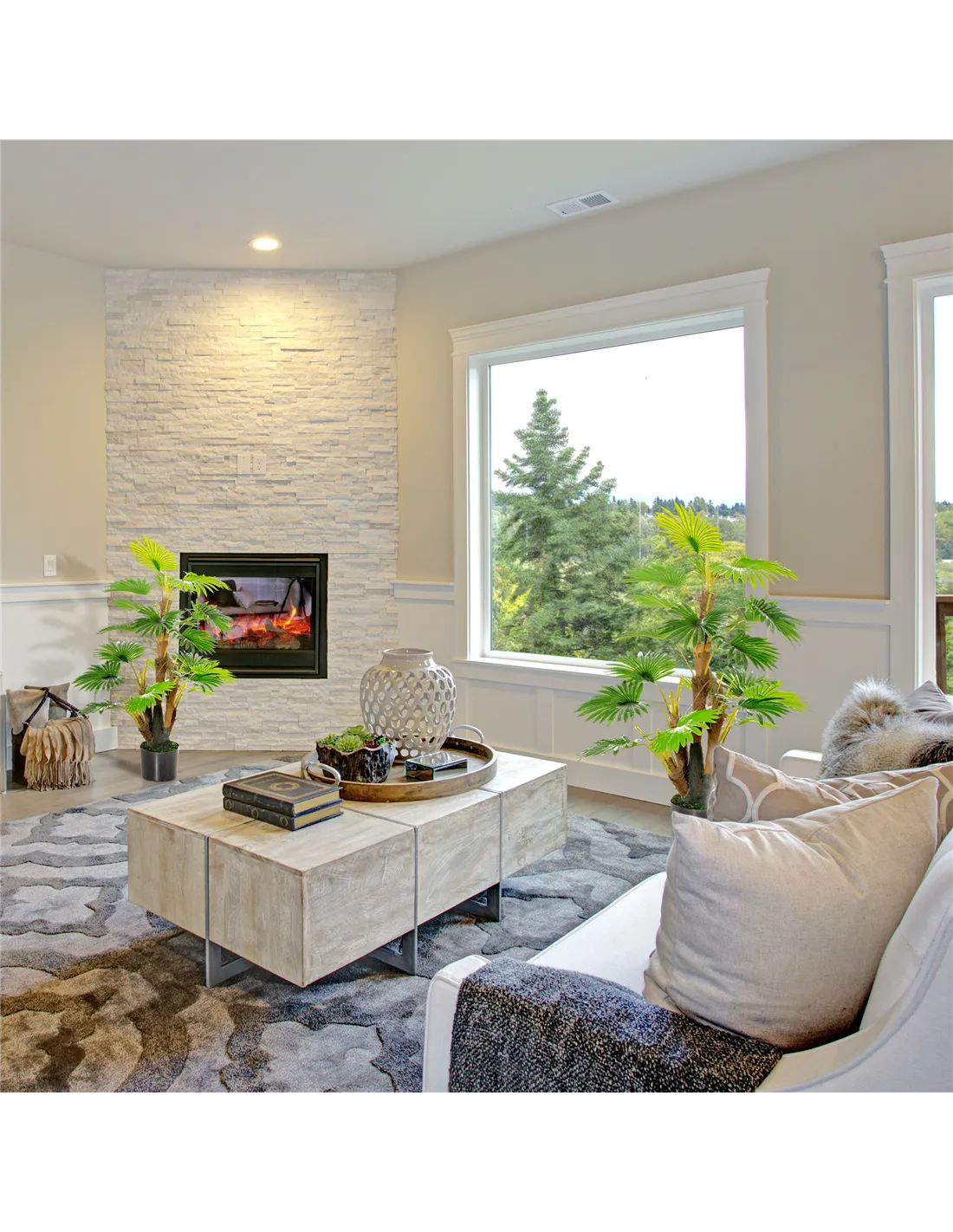 - Combine both palm trees to frame doorways or windows, adding height and vibrancy to your interior design.