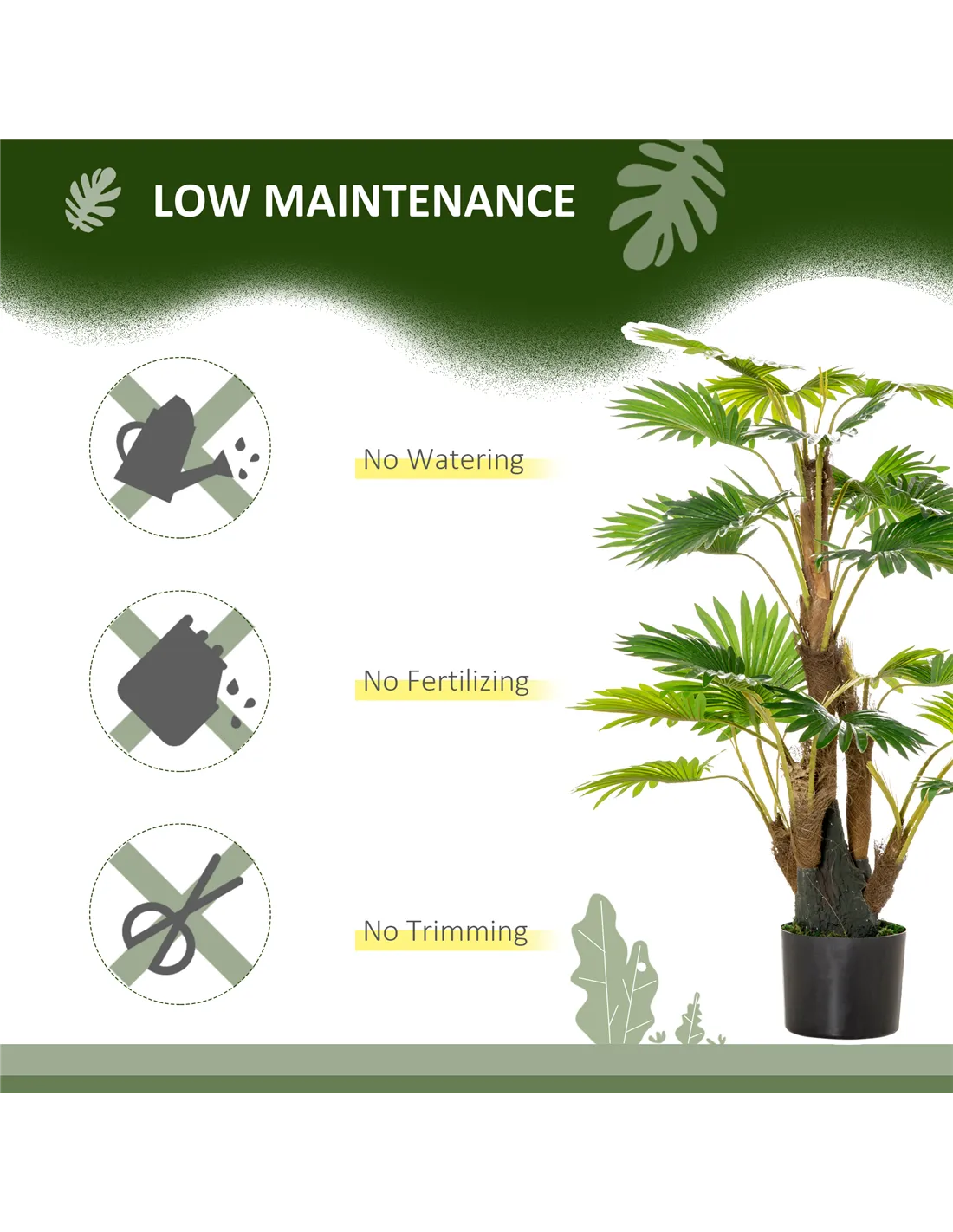 - Enhance living rooms or hallways with a touch of tropical greenery that requires no upkeep.