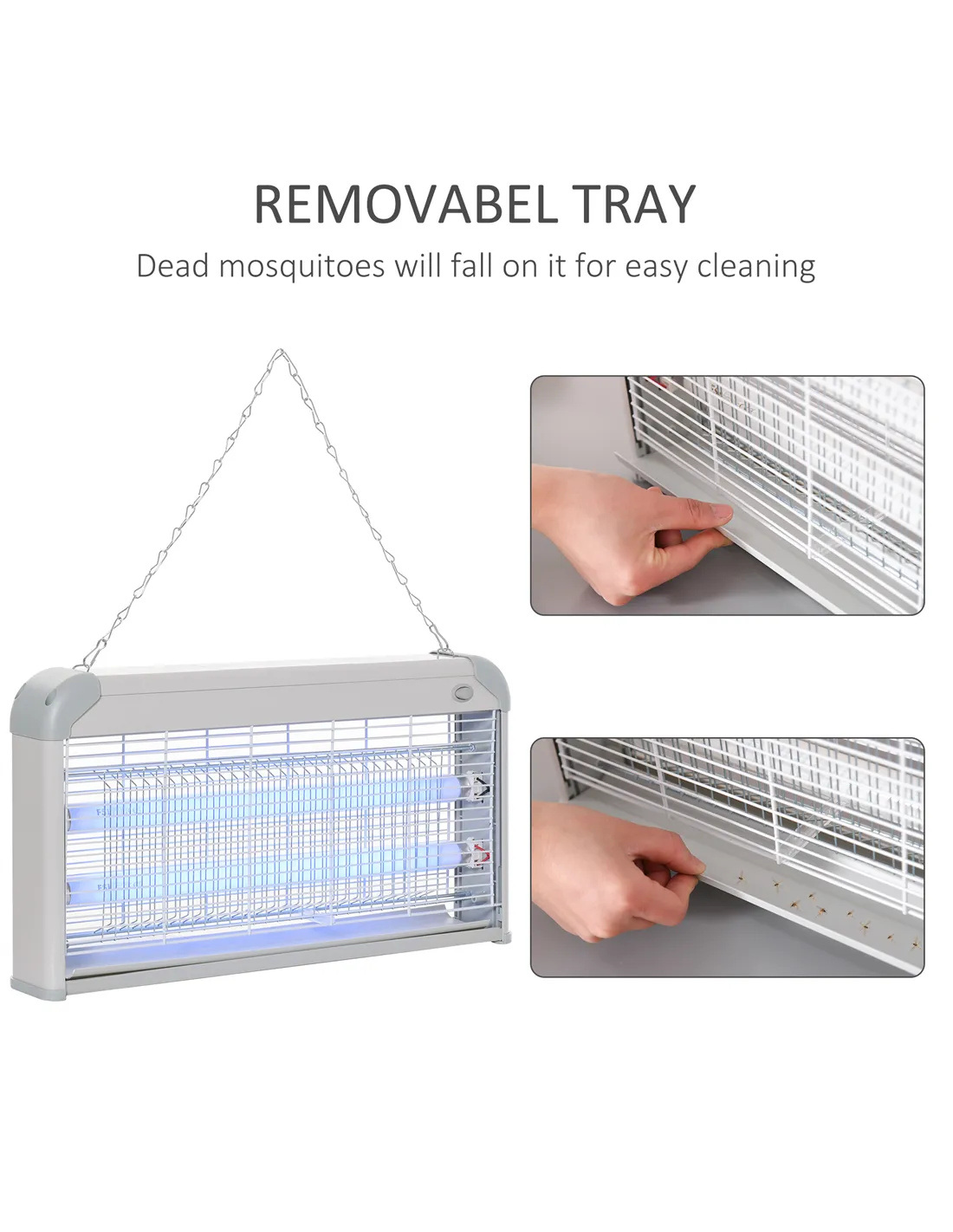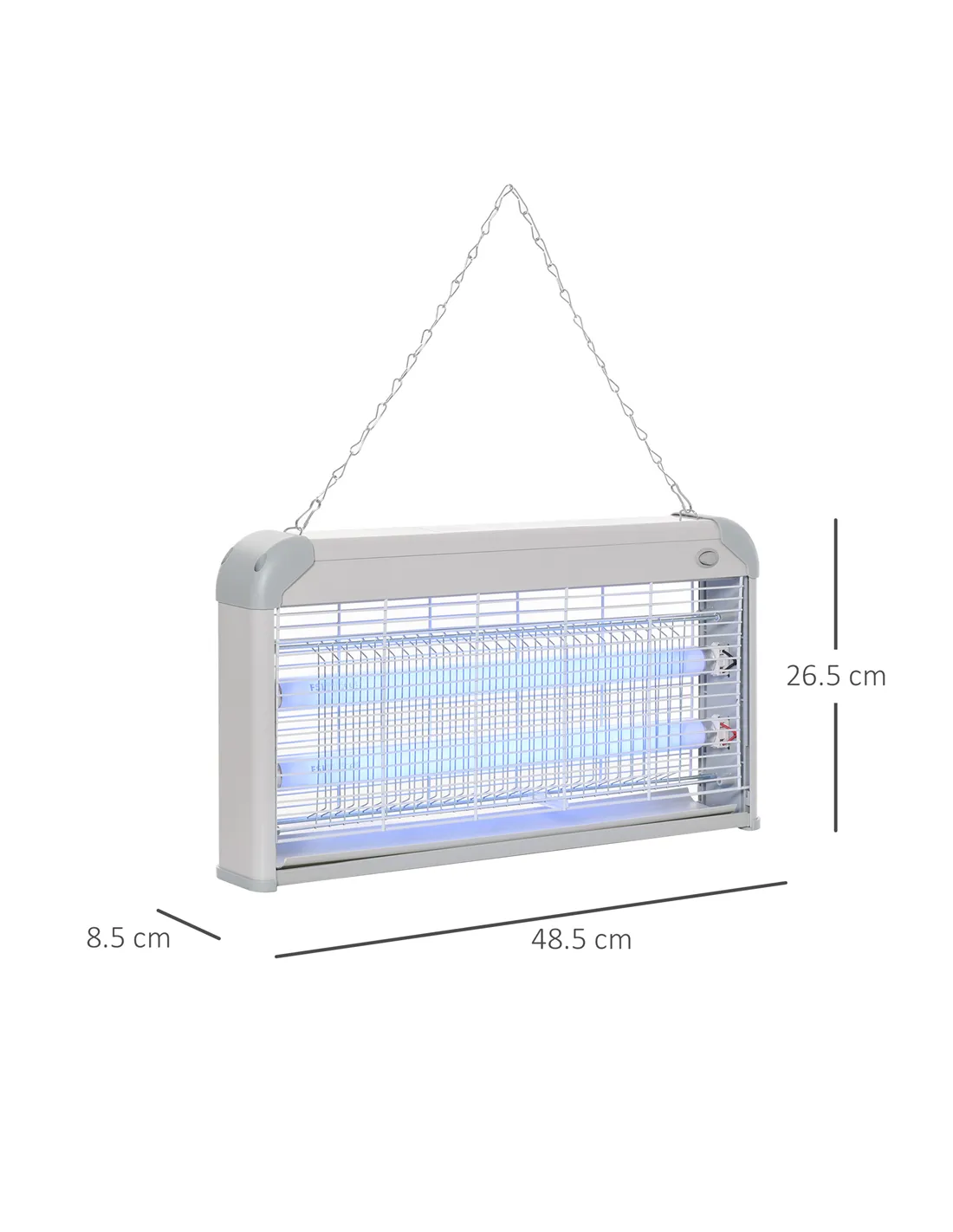 The Outsunny portable electric fly killer lamp is an energy-efficient, non-radiative, noiselessand and odorless solution for keeping mosquitoes and other pests away. It has a 30W high efficiency and covers an area of 60㎡. This mosquito zapper can be mounted on the wall or ceiling with the hanging chain, making it great for gardens, decks and balconies. The electric bug zapper's fully enclosed protective screening prevents electric shocks.