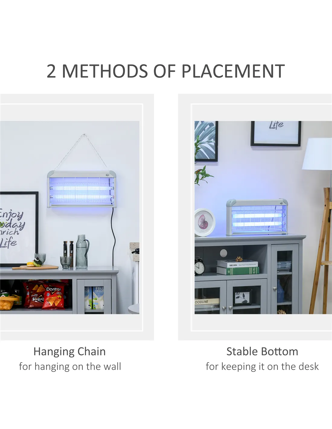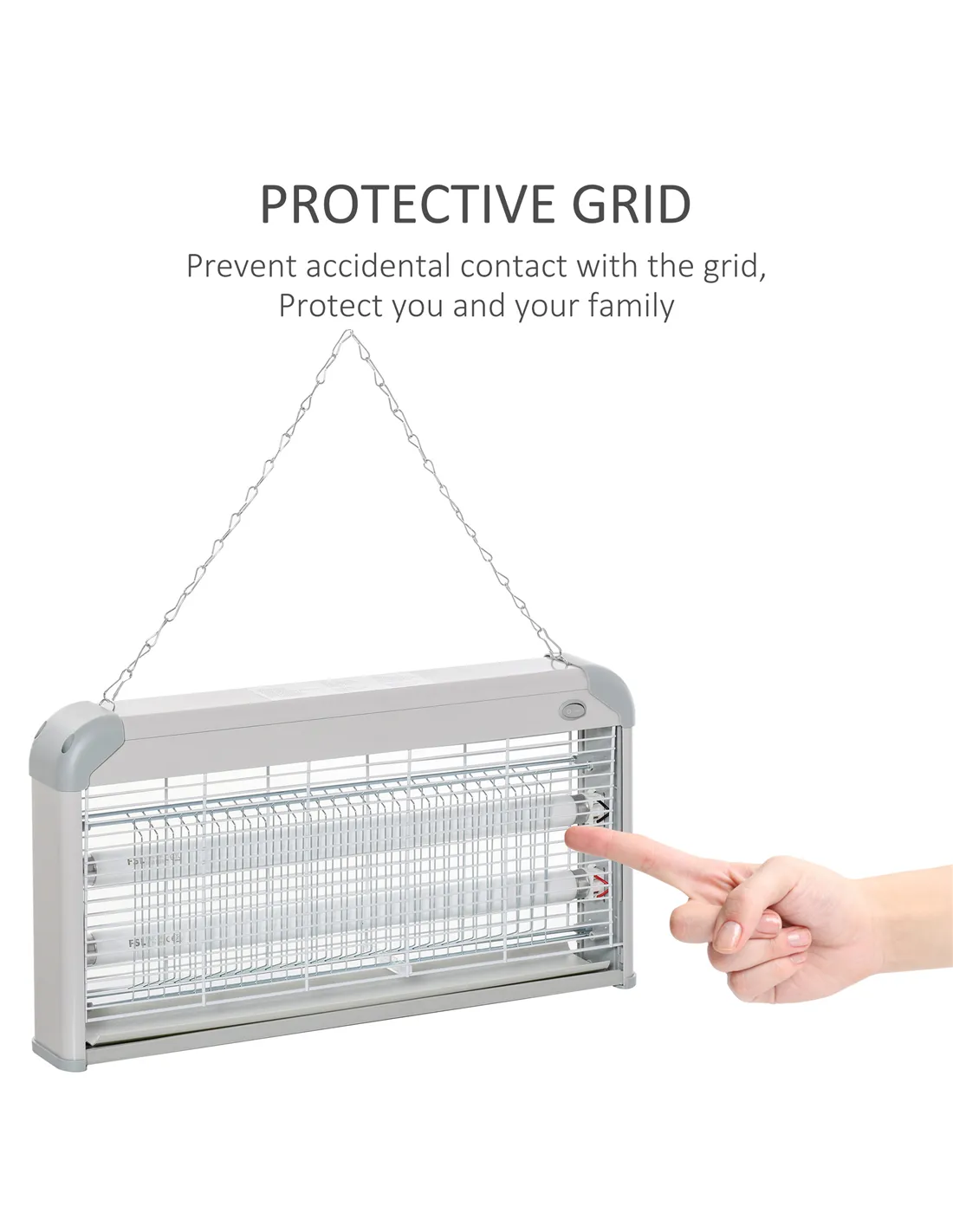 Outsunny Wall Hanging Bug Zapper, 30W Electric Fly Zapper Mosquito Killer, 60㎡ Coverage Insect Killer, Indoor Outdoor Use, Grey