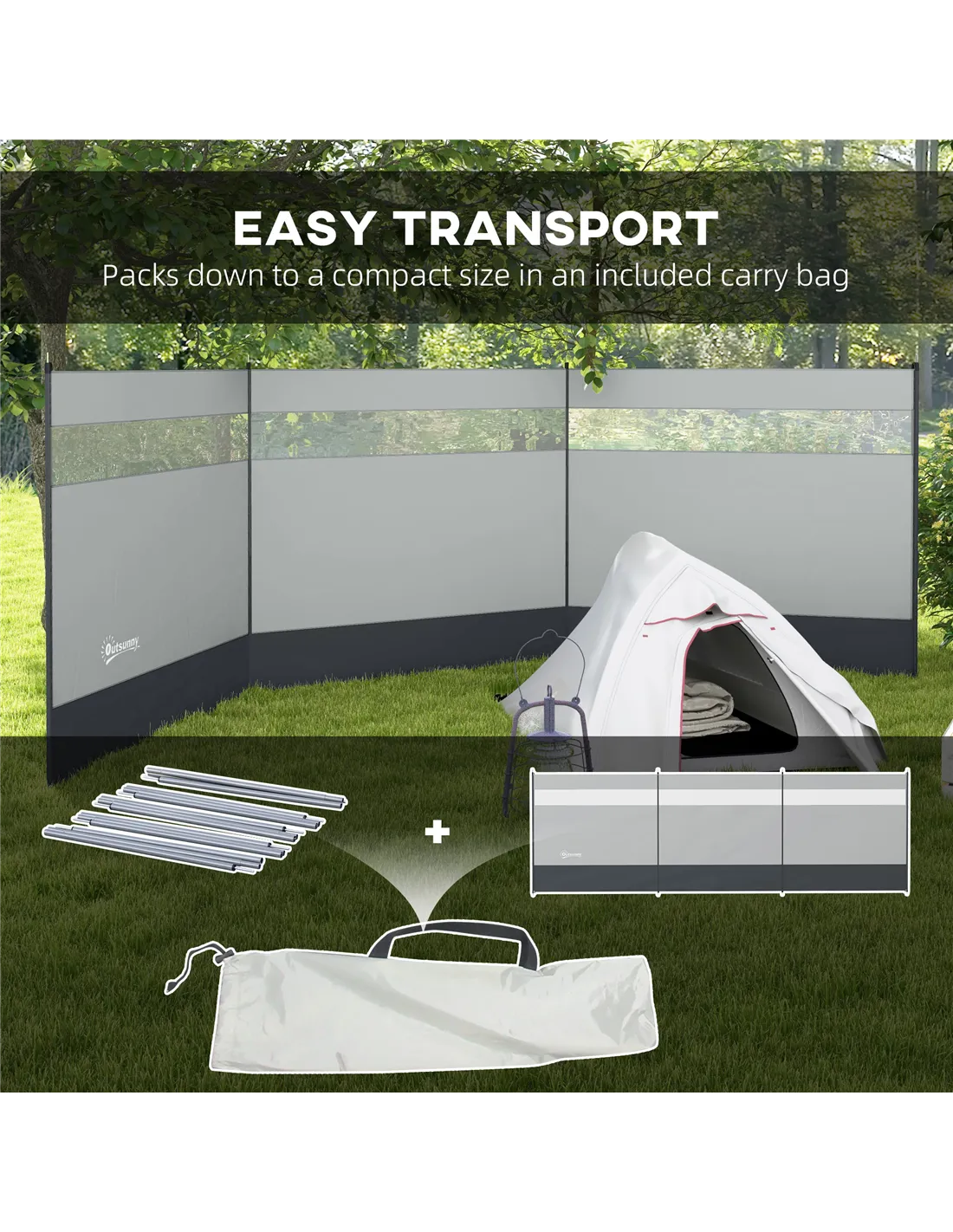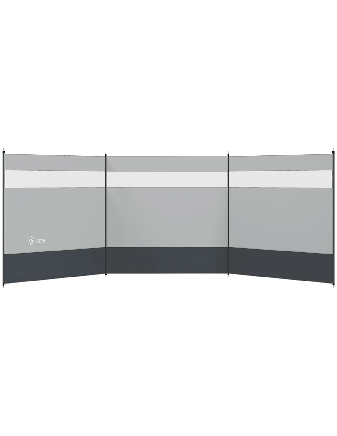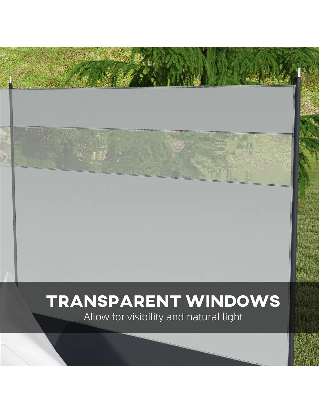 Outsunny Camping Windbreaker with Clear Windows, Carry Bag and Steel Poles, for Beach Caravan Campervan, 440 x 140cm, Grey