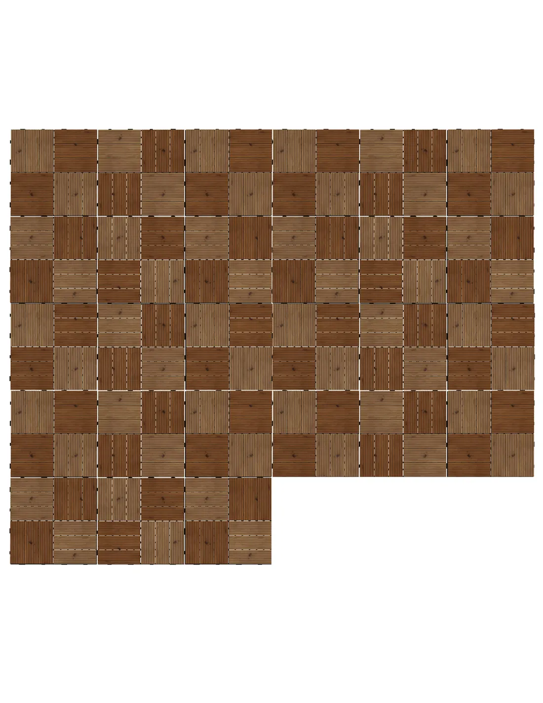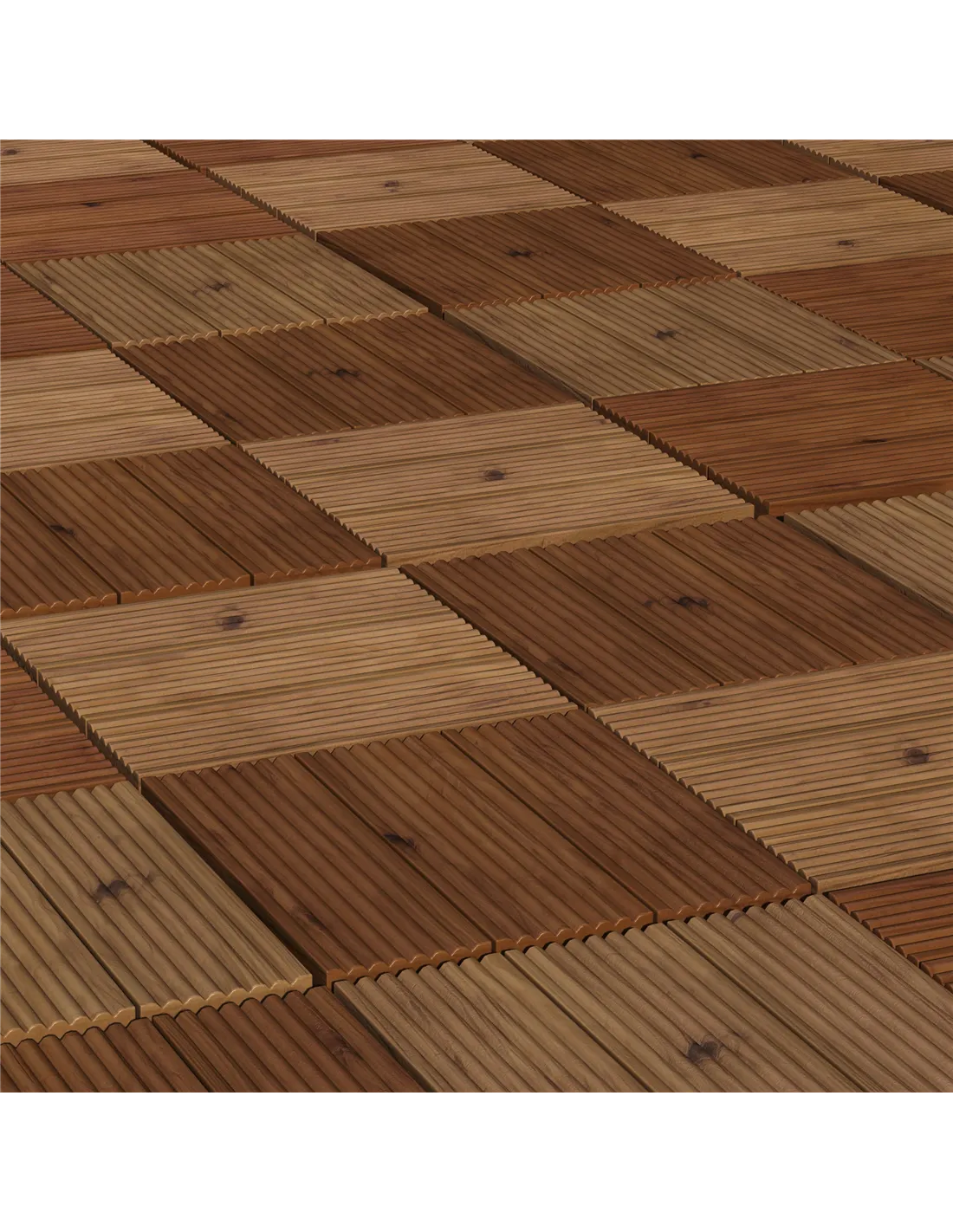 Renew the look of your space with these Outsunny outdoor deck tiles. Set comes with nine pieces: each piece uses a plastic frame for a tough shape, fitted with wooden tops for durability. The grooves of the tops increase the friction to help avoid slips when the tiles are wet. A simple and easy interlocking design makes it easy to set up. Set comes with nine pieces, covering a 0.81m² area size.