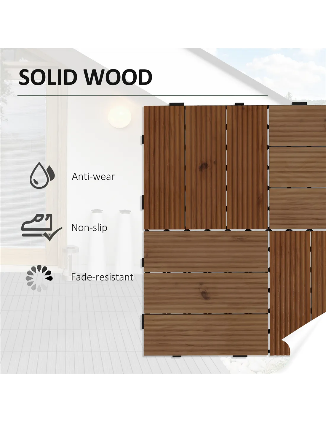 Outsunny 27 Pcs Wooden Interlocking Decking Tiles, 30 x 30 cm Anti-slip Outdoor Flooring Tiles, 0.81㎡ per Pack, All Weather Use for Patio, Balcony, Terrace, Hot Tub, Brown