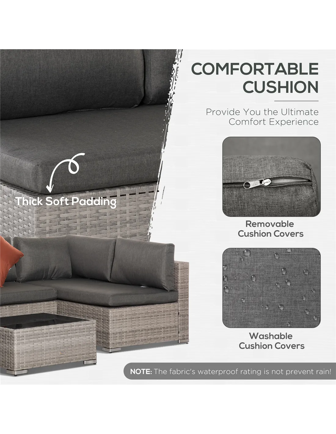 - Color: Deep Grey Rattan, Grey Cushion
