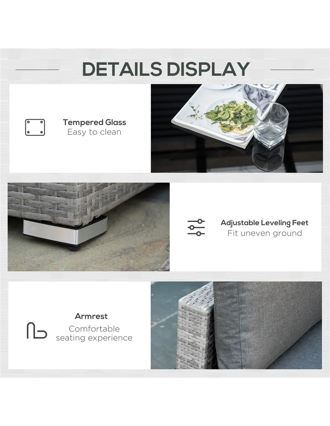 Based on customer reviews, the Outsunny rattan sofa set is praised for its robust construction and comfort. Buyers appreciate the soft, removable cushions with washable covers, which add convenience and ease of maintenance. Many highlight the adjustable foot pads that protect decking and flooring, a thoughtful feature for UK homes. The sleek mixed grey finish complements various outdoor décors, enhancing garden aesthetics. Customers also value the straightforward assembly process and the versatility of the modular pieces, which allow for personalised layouts. Overall, users recommend this set for its blend of style, durability, and comfort.