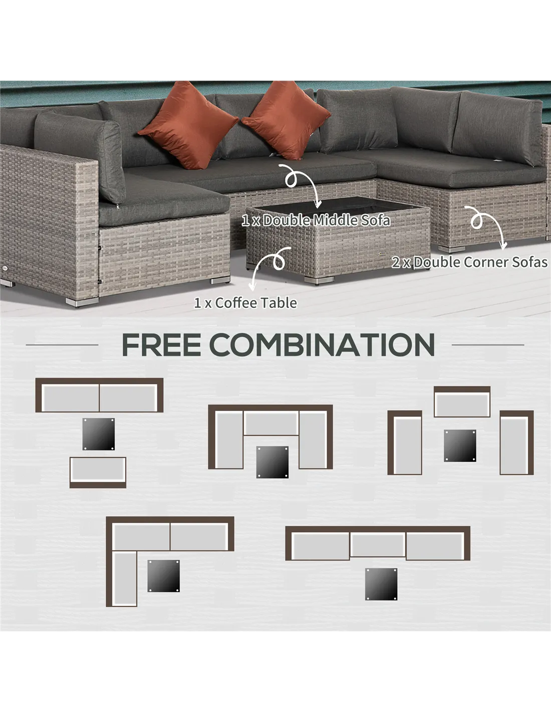 The Outsunny Four-Piece Half-Square Rattan Sofa Set in Mixed Grey is perfect for creating a stylish and comfortable outdoor seating area. Ideal for patios, gardens, backyards, or even a spacious balcony, this set offers flexible arrangements thanks to its modular design. Use the two double corner sofas and the double middle sofa to form a cosy lounge for family gatherings or socialising with friends. The coffee table with tempered glass top provides a practical surface for drinks and snacks, making it an excellent choice for alfresco dining or relaxing with a book. Its durable materials ensure it withstands the British weather, making it a reliable addition to any outdoor space.