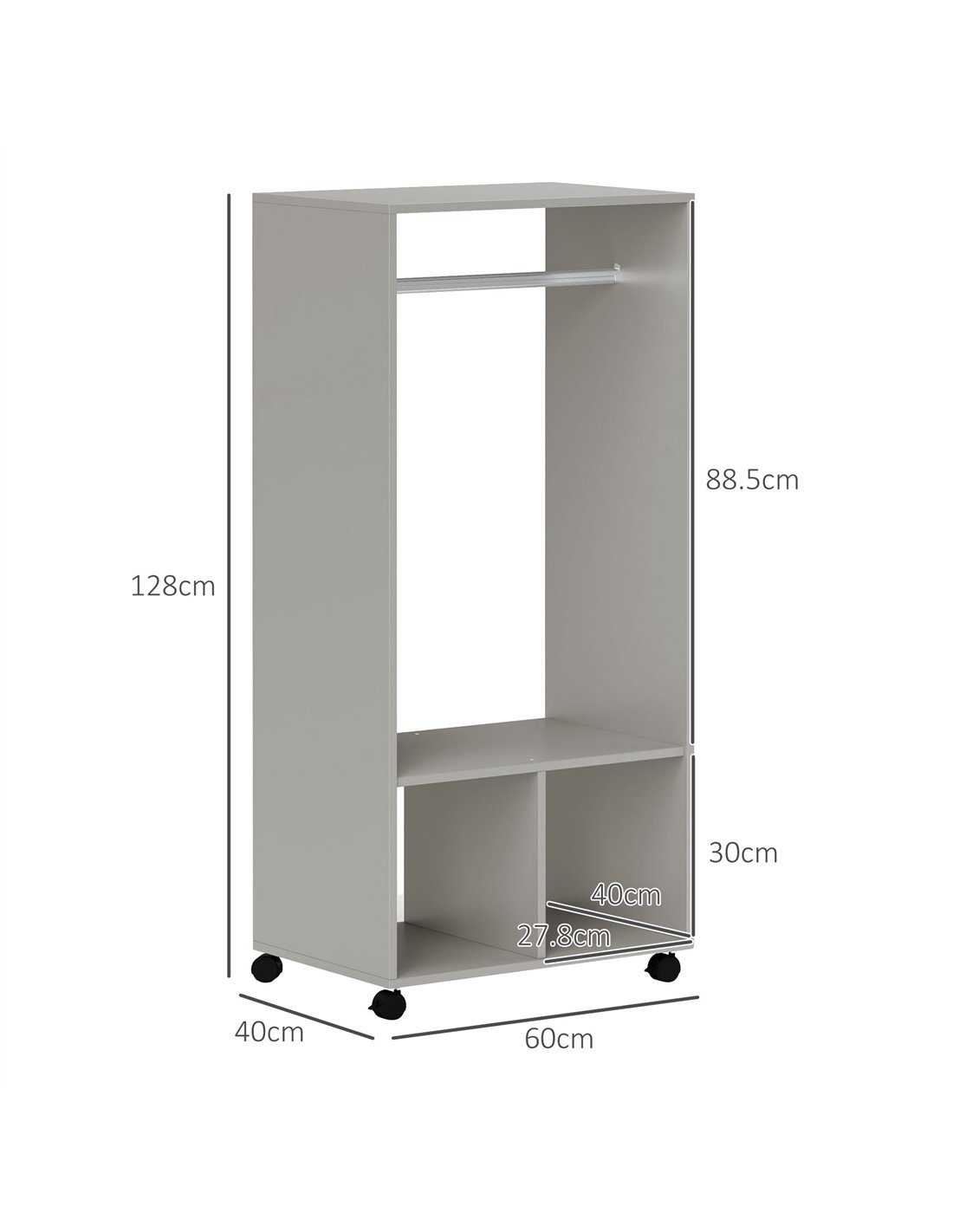 HOMCOM Open Wardrobe on Wheels, Bedroom Wardrobe with Clothes Hanging Rail, 2 Storage Shelves, Mobile Garment Rack for Cloakroom, Hallway, Grey