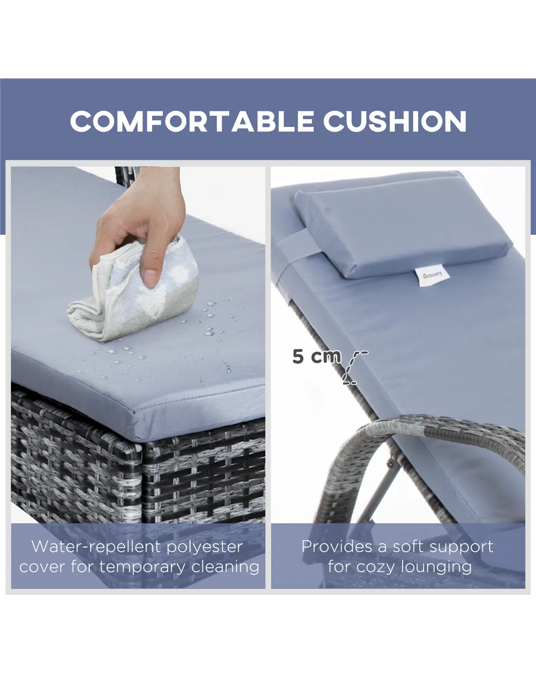 Each lounger can safely support up to 160kg, providing sturdy and comfortable seating for most users.