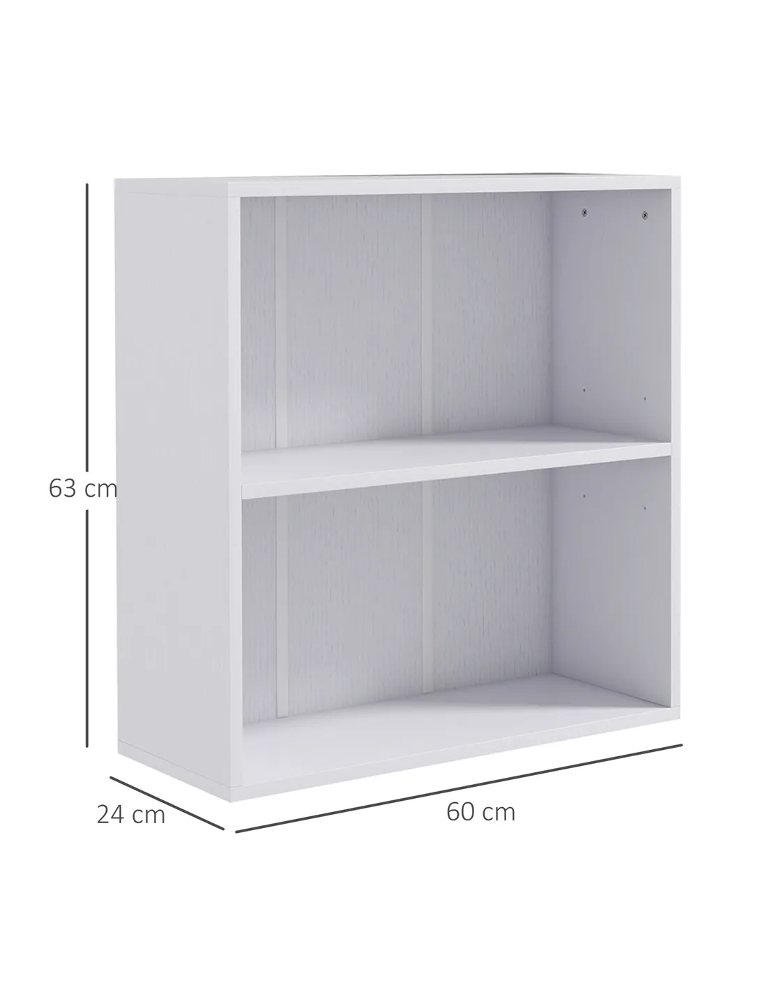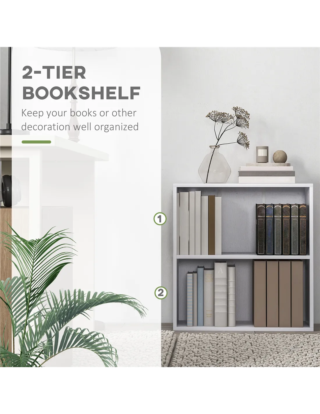 HOMCOM 2 Tier Bookshelf, Low Bookcase with Adjustable Shelf, 2 Compartments for Home Office, Living Room, Study, White