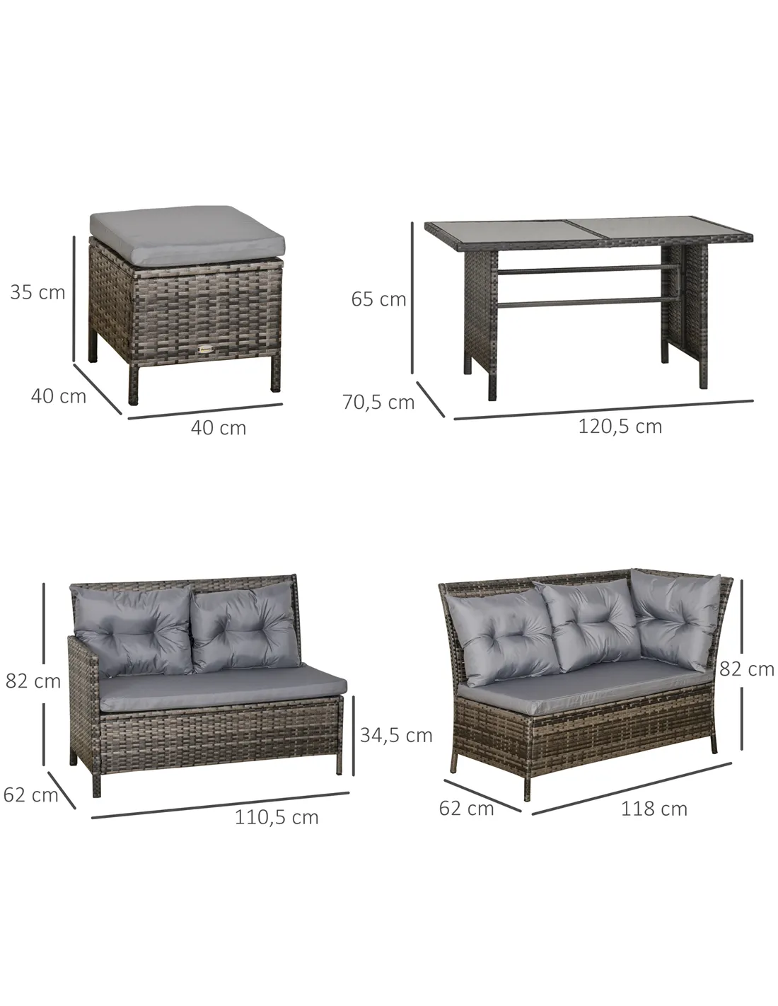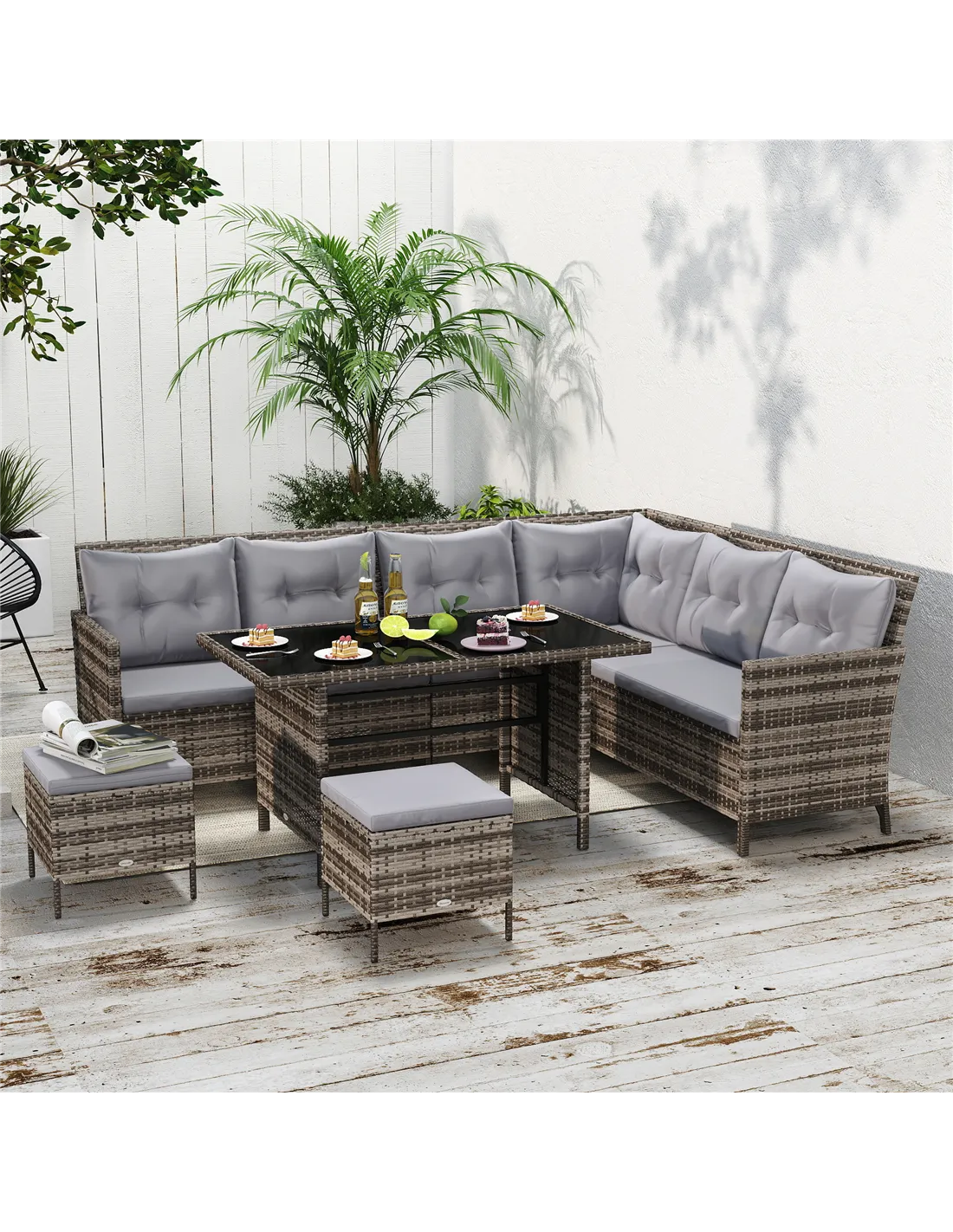 Outsunny 8 Seater Patio wicker Sofa Set ,Outdoor Couch with Table & Cushions, Grey