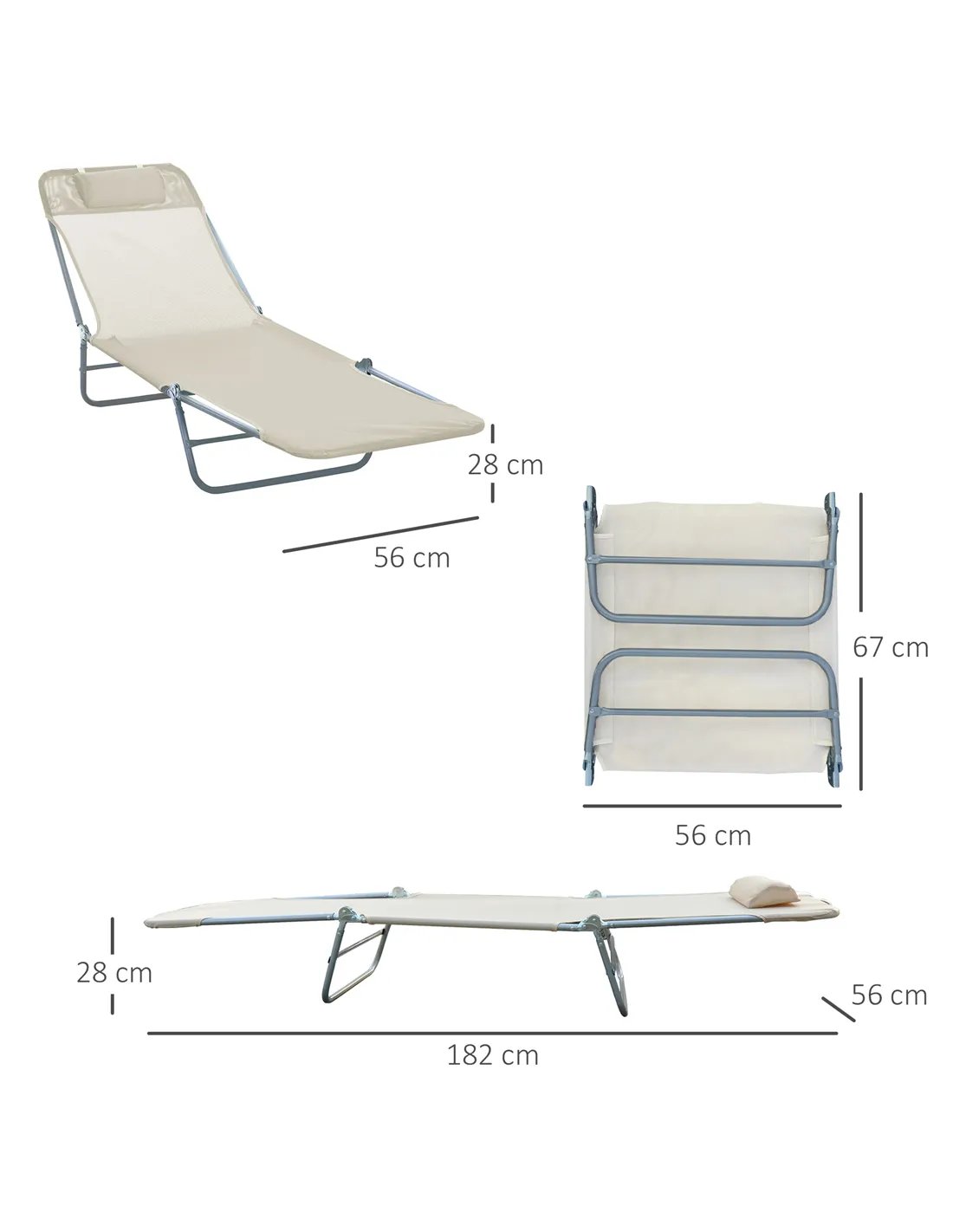 Relax anywhere if your choose, with Outsunny folding sun lounger. Powder coated steel frames mean a strong core, fitted with a soft fabric seat and pillow for comfort. Both feature a reclining back so you can relax to an angle of your choice. Simply fold up and carry to wherever you want.