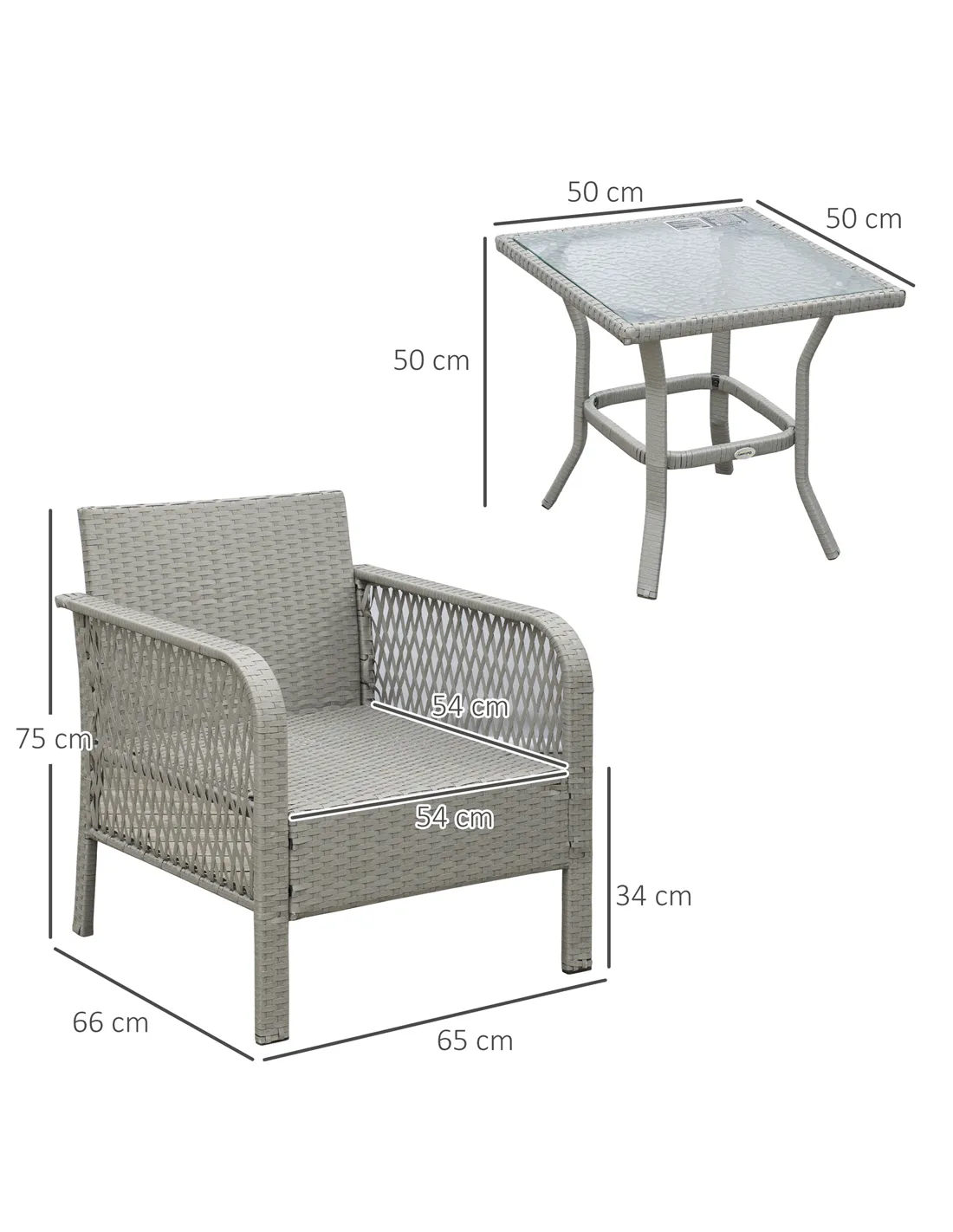 The Outsunny 3-piece rattan bistro set is perfect for creating a cosy outdoor retreat on your patio, balcony, or garden. Ideal for morning coffees, afternoon teas, or relaxed evening chats, this compact set comfortably seats two and adds a stylish touch to any outdoor space. Thanks to its durable metal frame and weather-resistant PE wicker, it withstands the British climate while maintaining its elegant appearance. The tempered glass table top offers a practical surface for drinks and snacks, making it a versatile choice for alfresco dining or casual entertaining. Cushioned seats ensure comfort during long conversations or quiet moments enjoying fresh air.