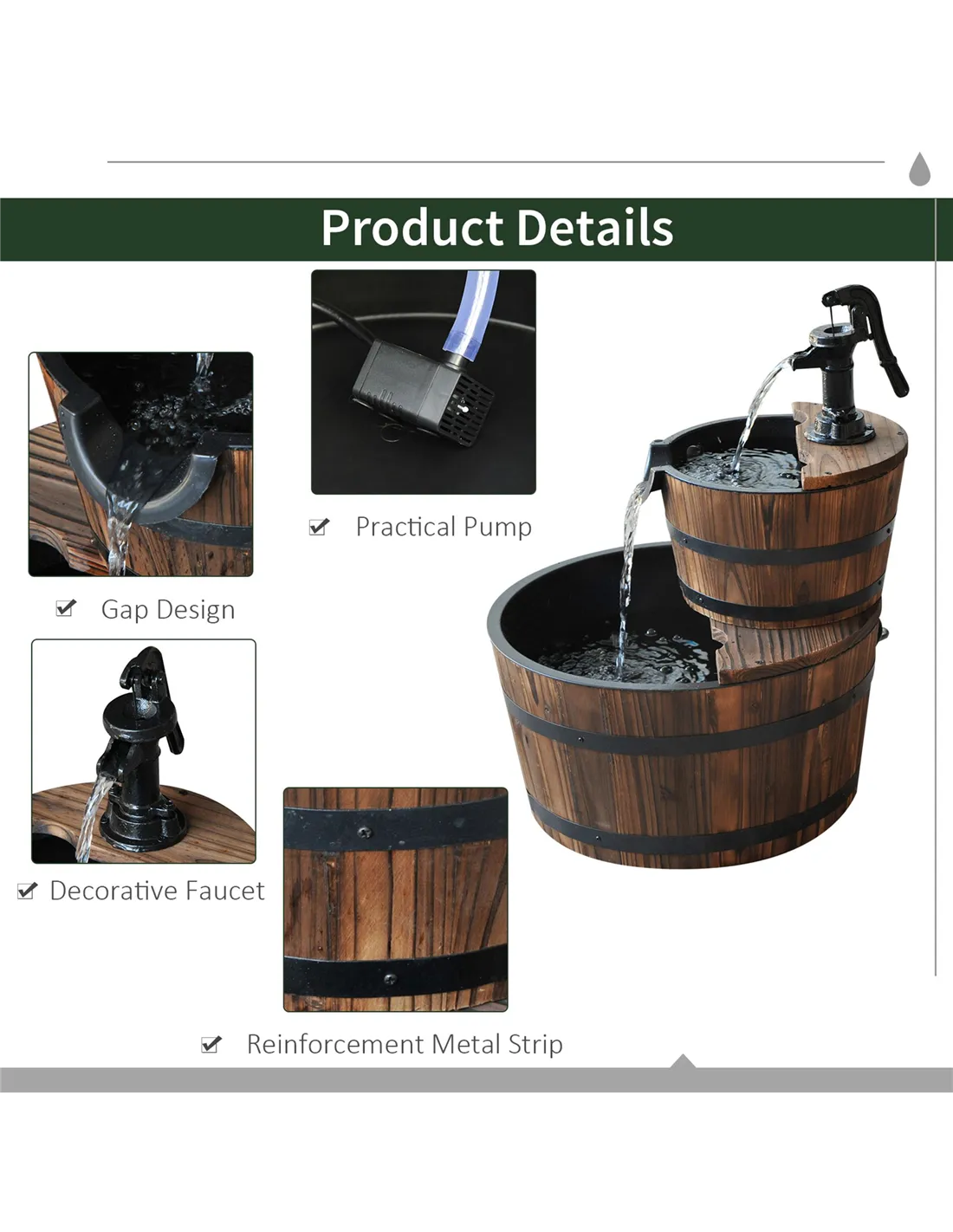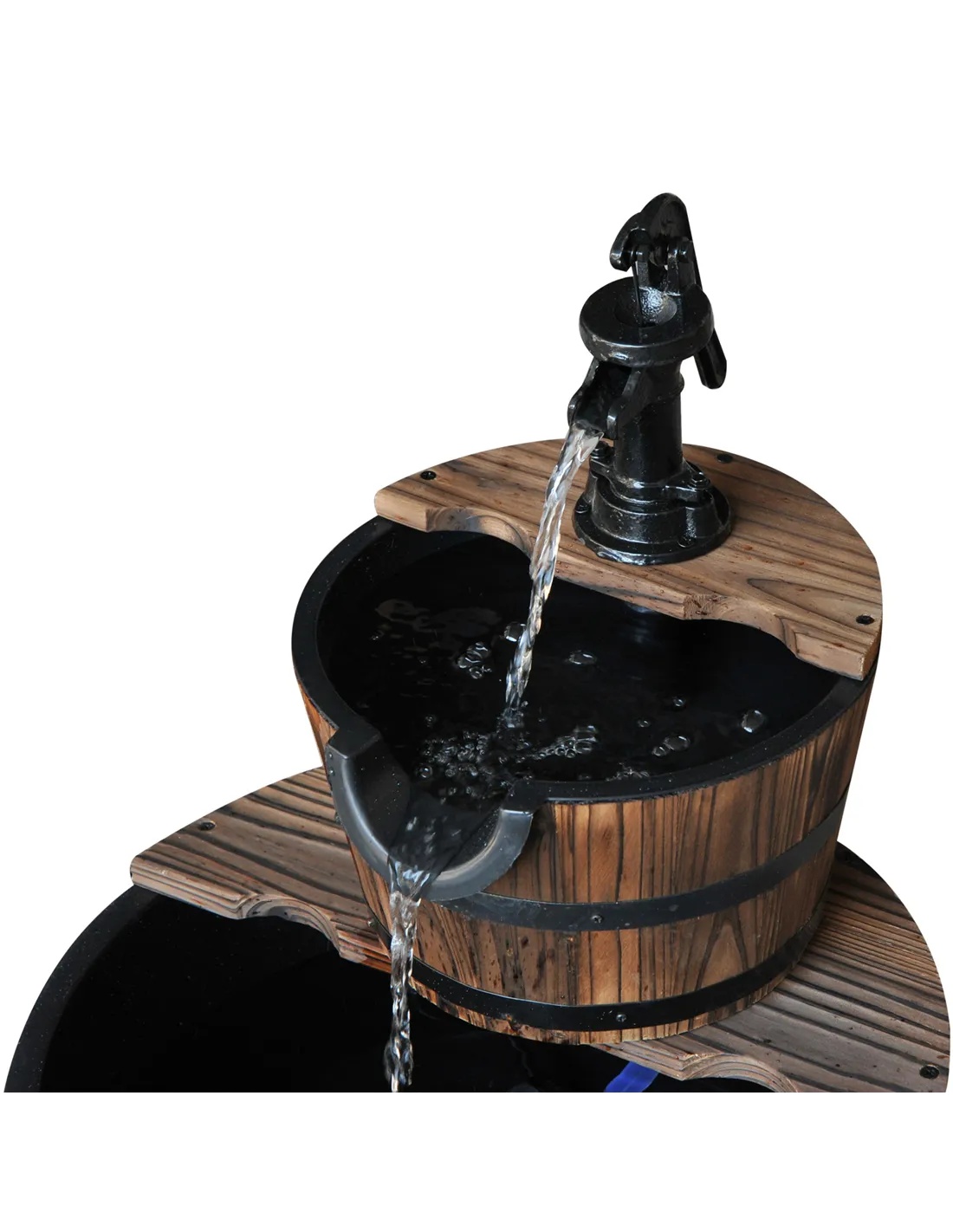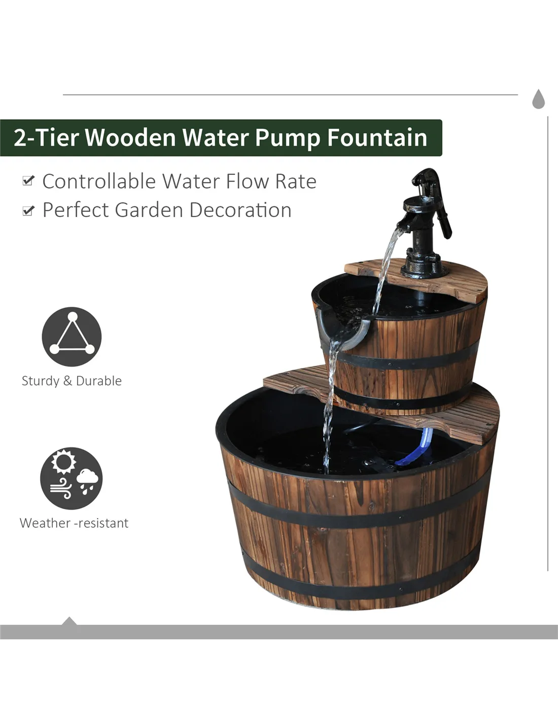 Outsunny Wooden Water Pump Fountain, 2 Tier-Fir Wood