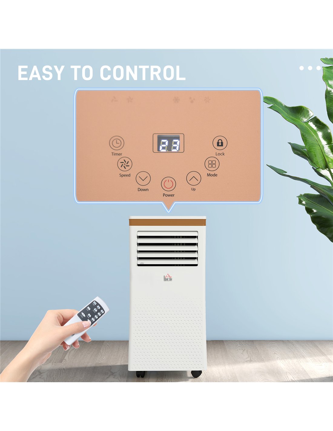 HOMCOM Portable Air Conditioner 10000 BTU, 4-in-1 Mobile Air Conditioning Unit with Cooling, Fan, Dehumidifier & Sleep Mode, LED Display, Remote Control, 24H Timer, Window Kit for Rooms up to 30㎡