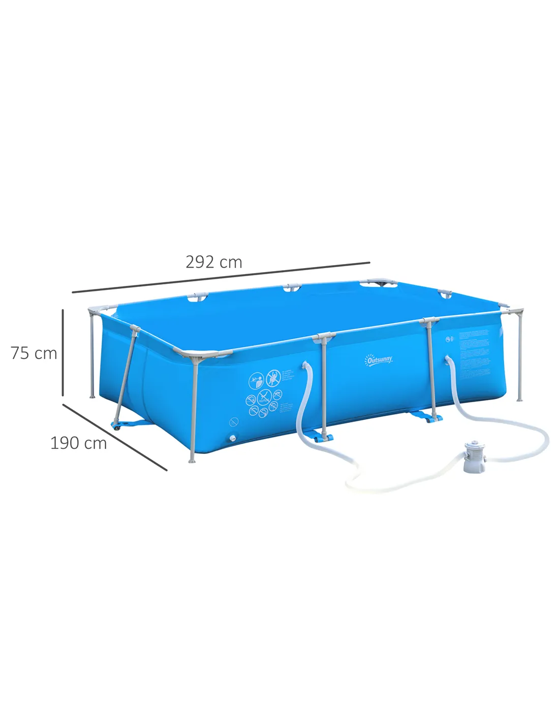 Outsunny Steel Frame Pool with Filter Pump, Filter Cartridge, Reinforced Sidewalls Rust Resistant Above Ground Swimming Pool 292 x 190 x 75cm, Blue