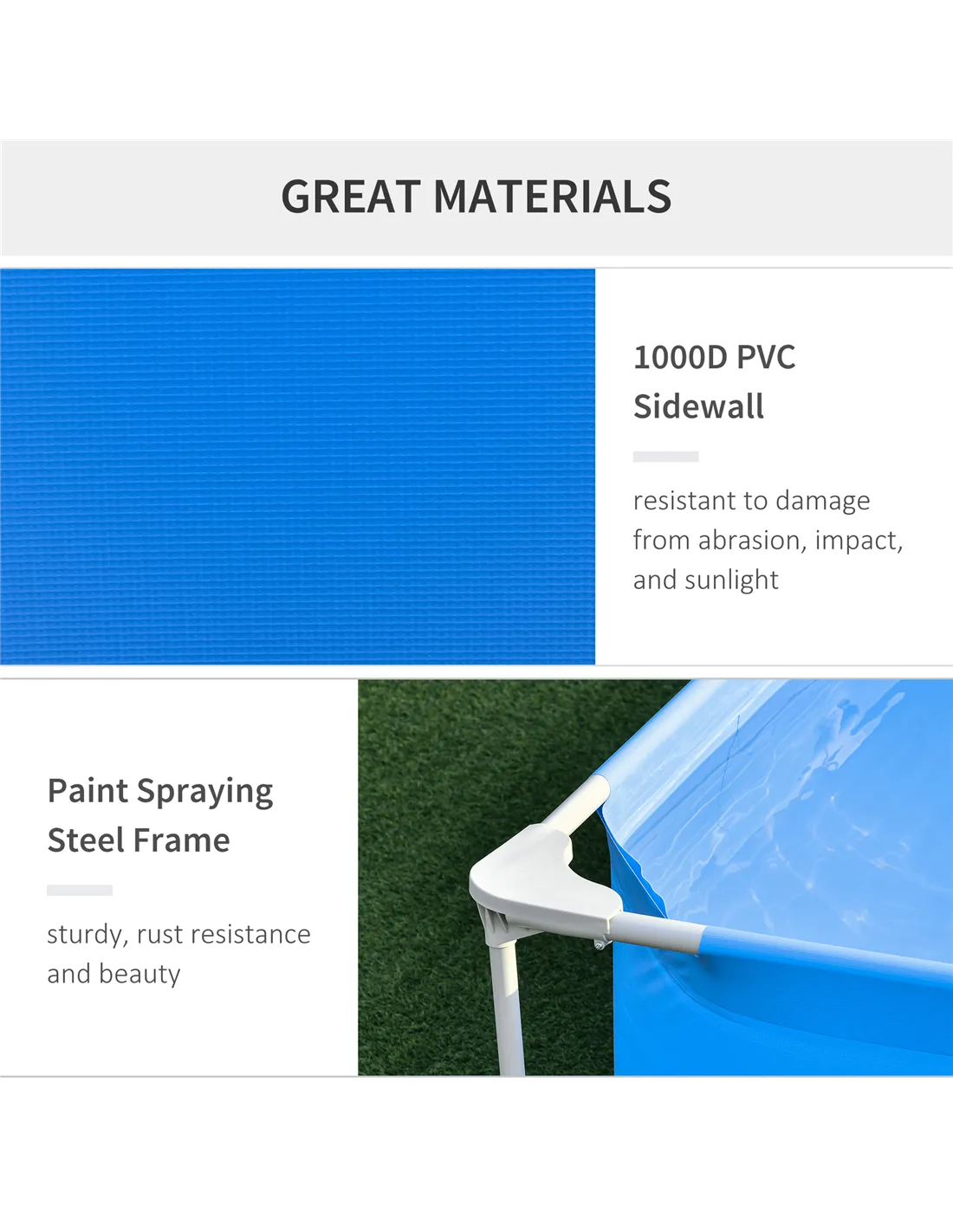 - The pool frame is applied with a rust and corrosion-resistant coating