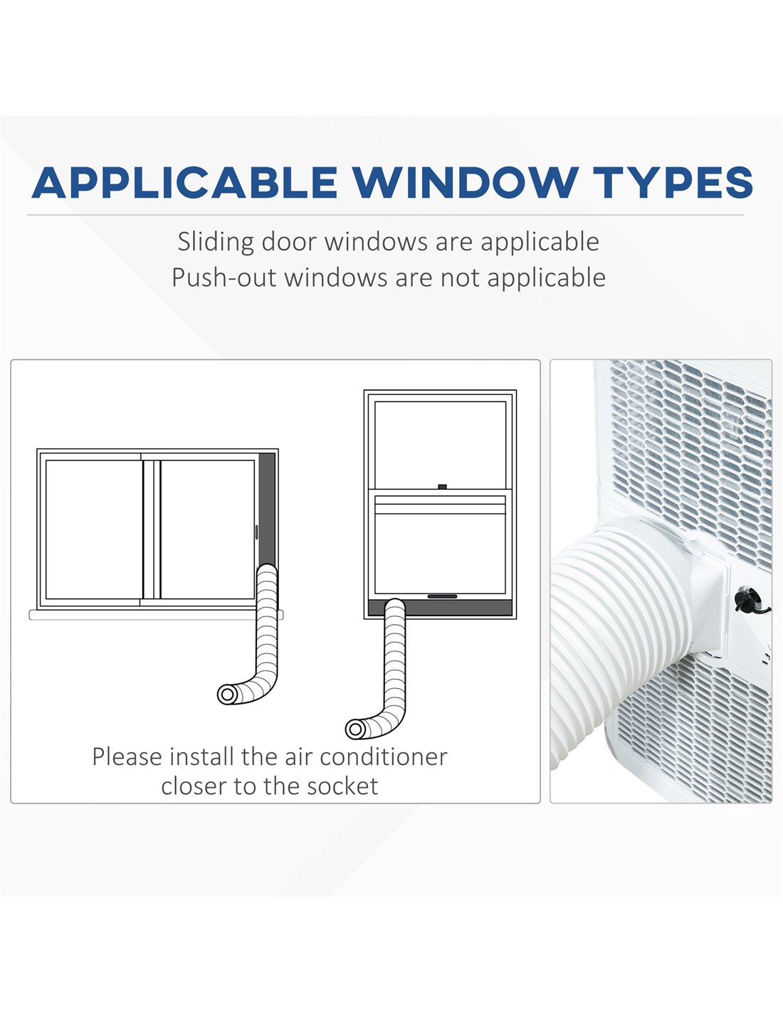 - NOTE: Can only be used for sliding door windows, the exhaust hose is required to connect inside and outside when installing. If the mobile air conditioner can not be cooled, stand for 24 hours before turning it on