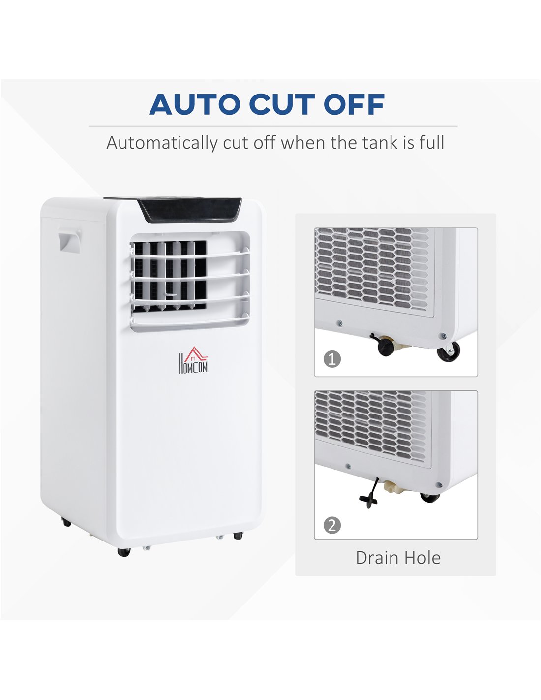 Mobile air conditioner - keeping you cooler easier this summer and beyond. Even better, this HOMCOM portable air conditioning unit comes with three functions: cool, dehumidify and fan to keep yourself cool the way you want. Also, portable ac comes with two speeds. The LED panel displays the current running setting, but if far away you can also control with the remote. There's a removable filter you can clean, keeping air as fresh as possible. Comes with an exhaust hose and water doesn't have to be drained.