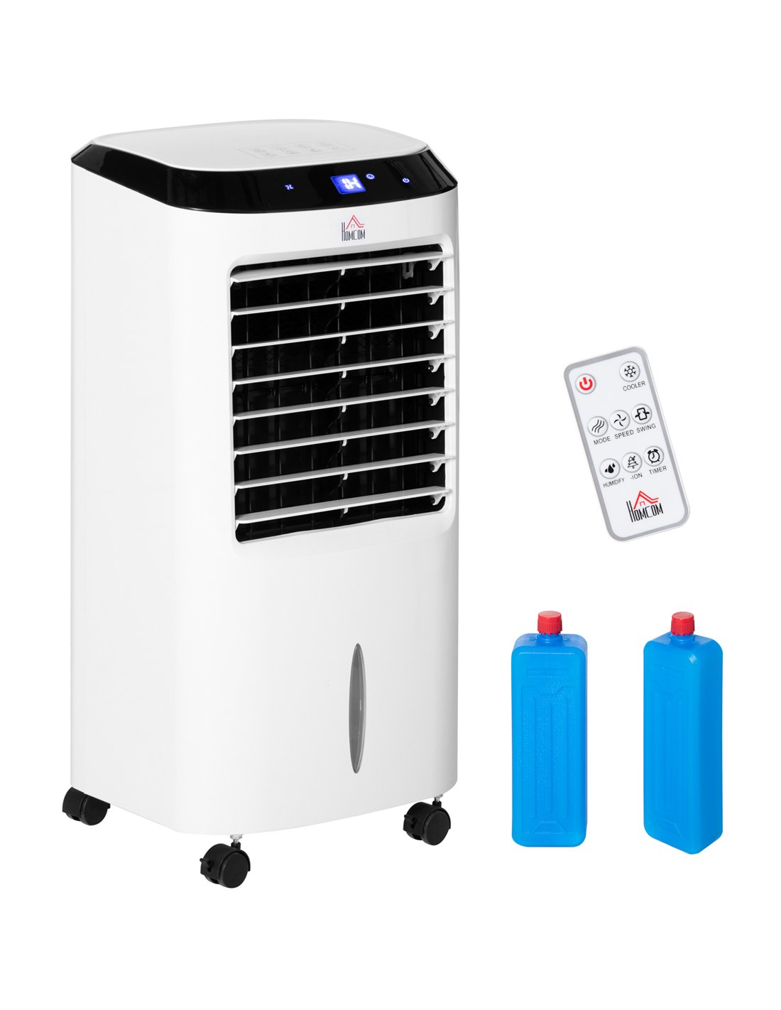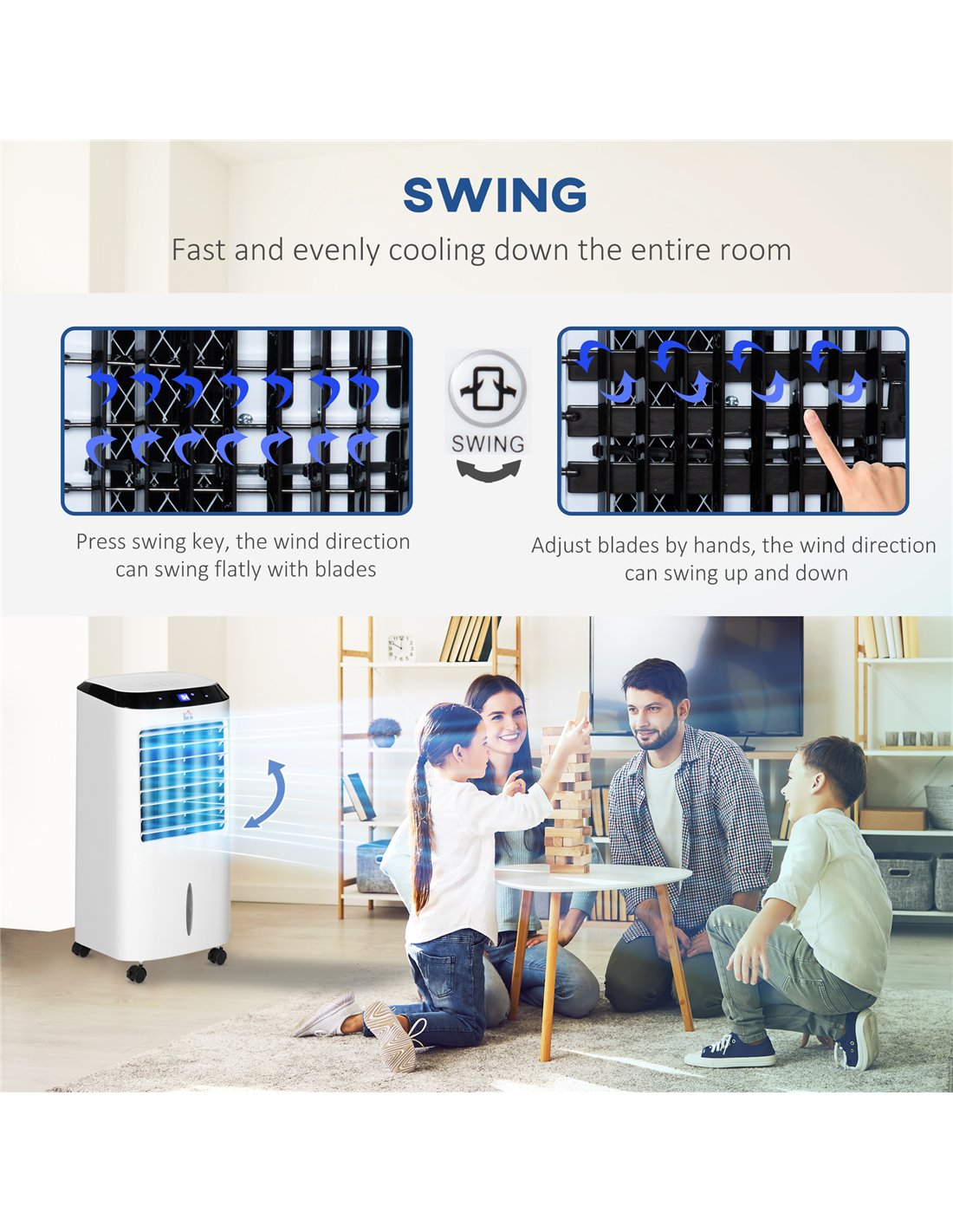 HOMCOM Portable Air Cooler, Evaporative Anion Ice Cooling Fan Water Conditioner Humidifier Unit with 10L Water Tank, 3 Modes, 3 Speed, Remote, Timer, Oscillating for Home Quiet Bedroom, White