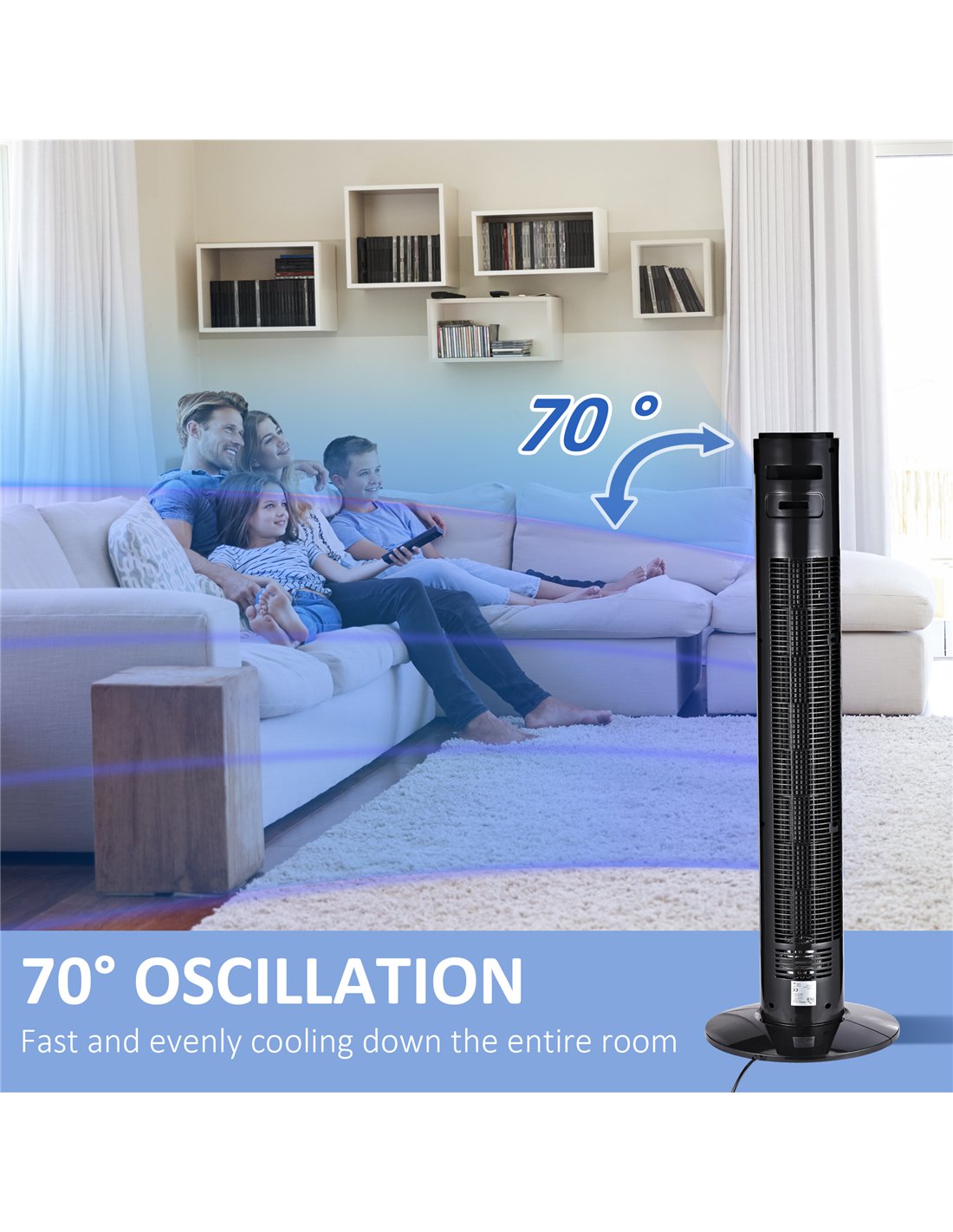 HOMCOM 38'' Freestanding Tower Fan, 3 Speed 3 Mode, 12h Timer, 70 Degree Oscillation, LED Panel, 5M Remote Controller, Black