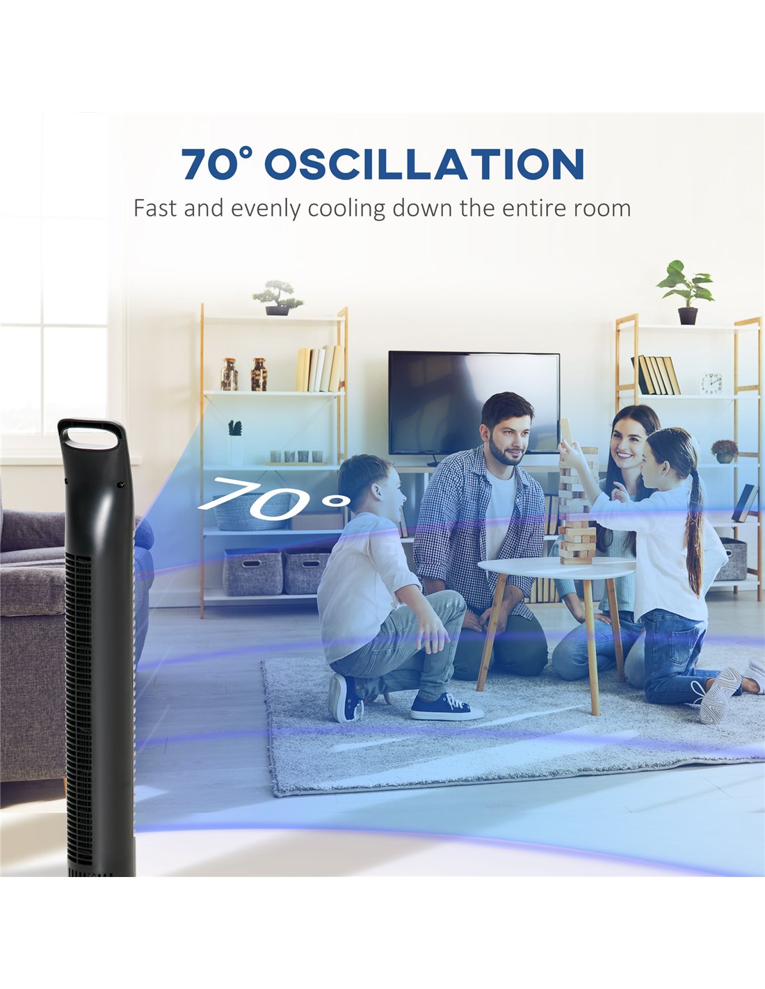 HOMCOM 31" Oscillating Tower Fan with Remote Control, 7.5H Timer, 3 Speed 3 Modes, Electric Floor Standing Cooling Fan for Home Bedroom Office, Black