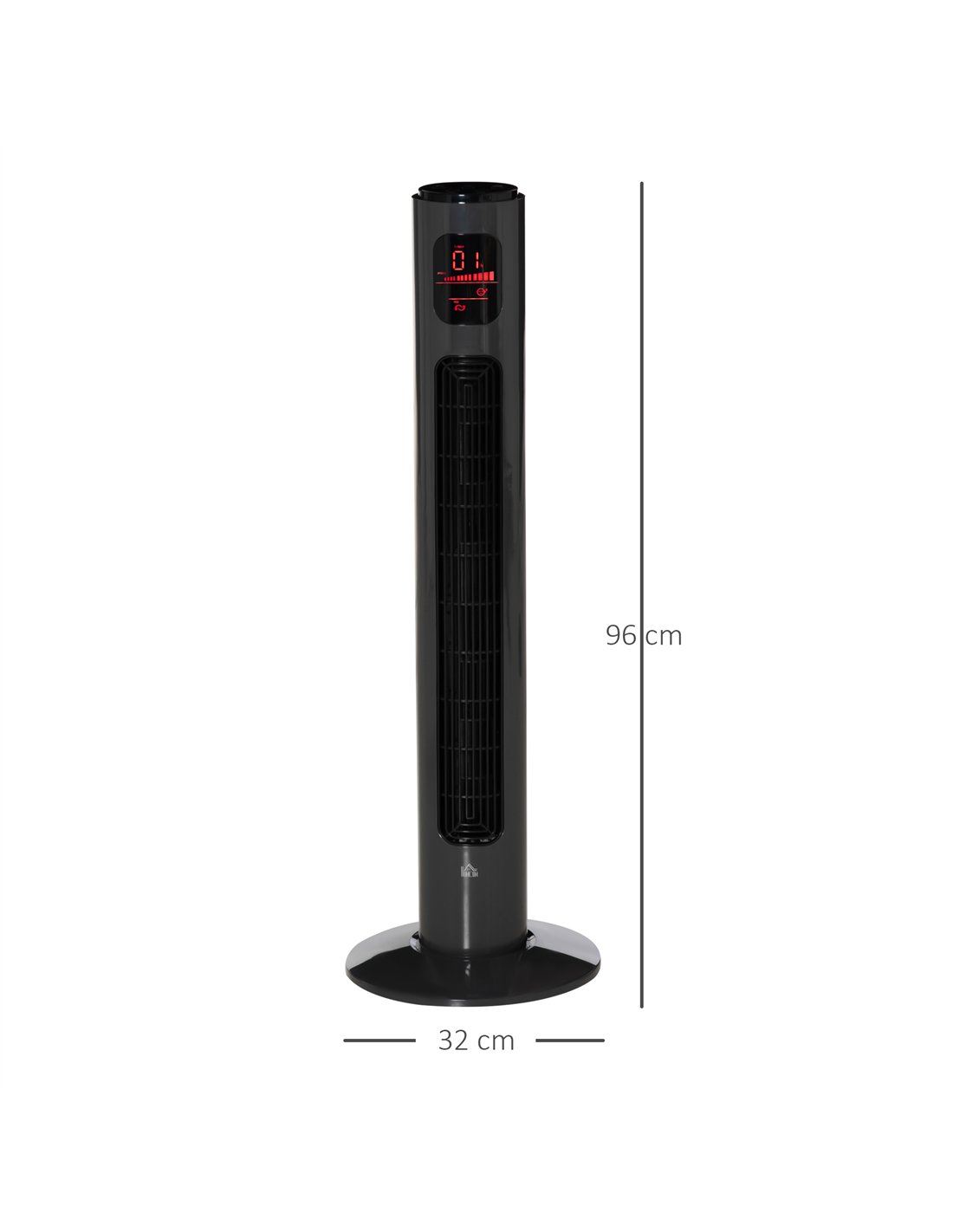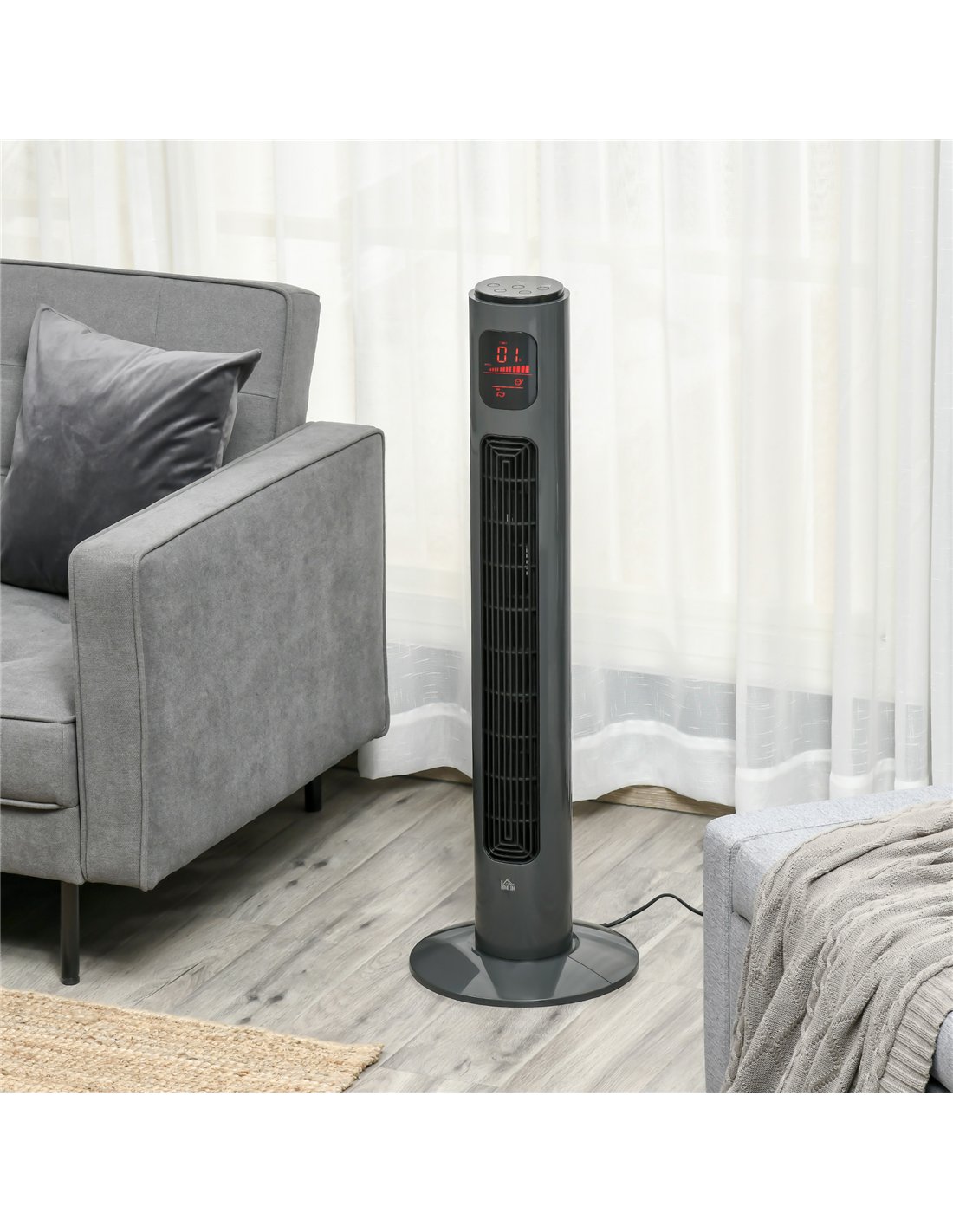 HOMCOM 38'' Freestanding Tower Fan, 3 Speed 3 Mode, 12h Timer, 70 Degree Oscillation, LED Panel, 5M Remote Controller, Dark Grey