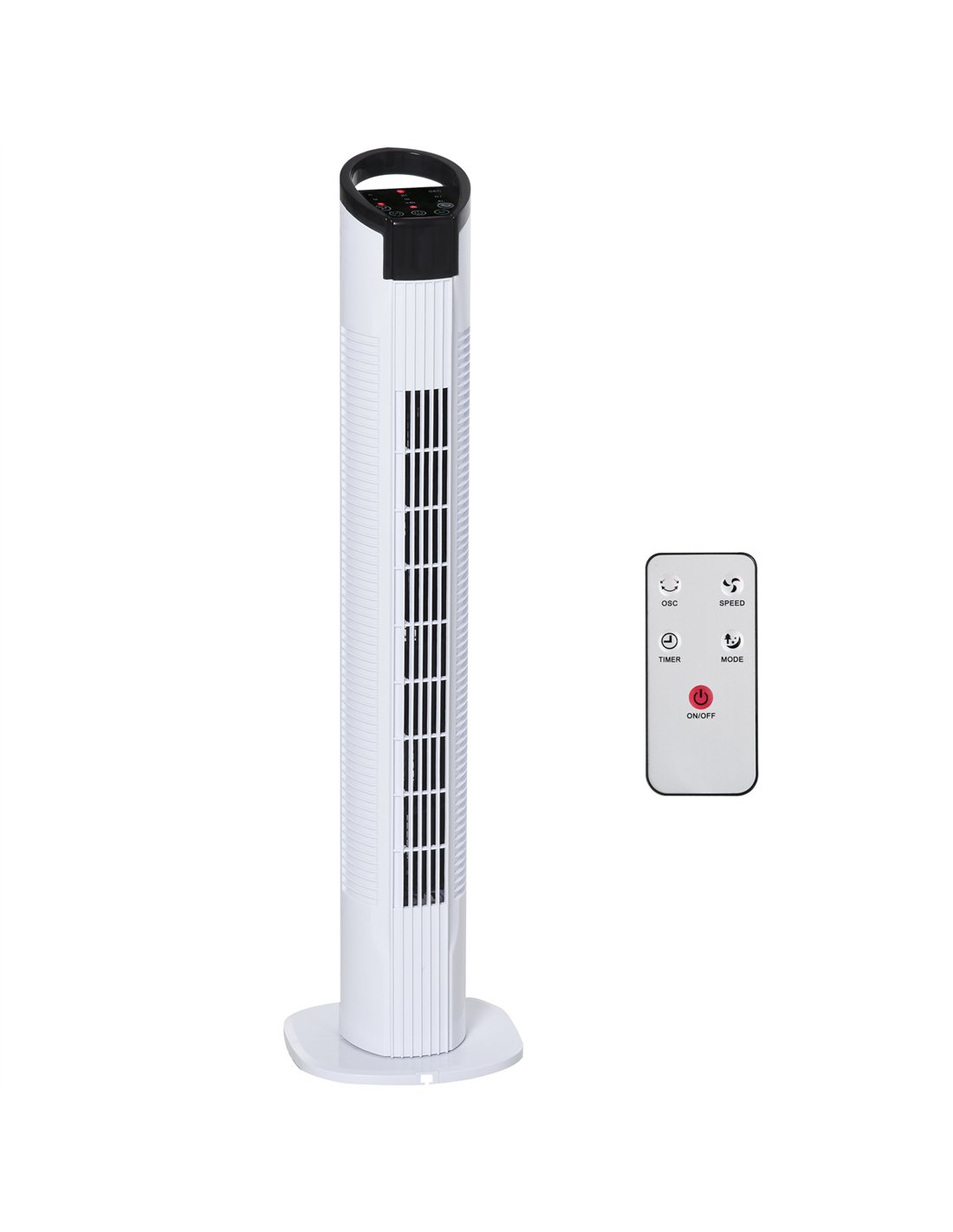 HOMCOM 31" Freestanding Tower Fan, 3 Speed 3 Mode, 7.5H Timer, Oscillating, LED Panel, Remote Control, 31 Inch Standing Fan, White