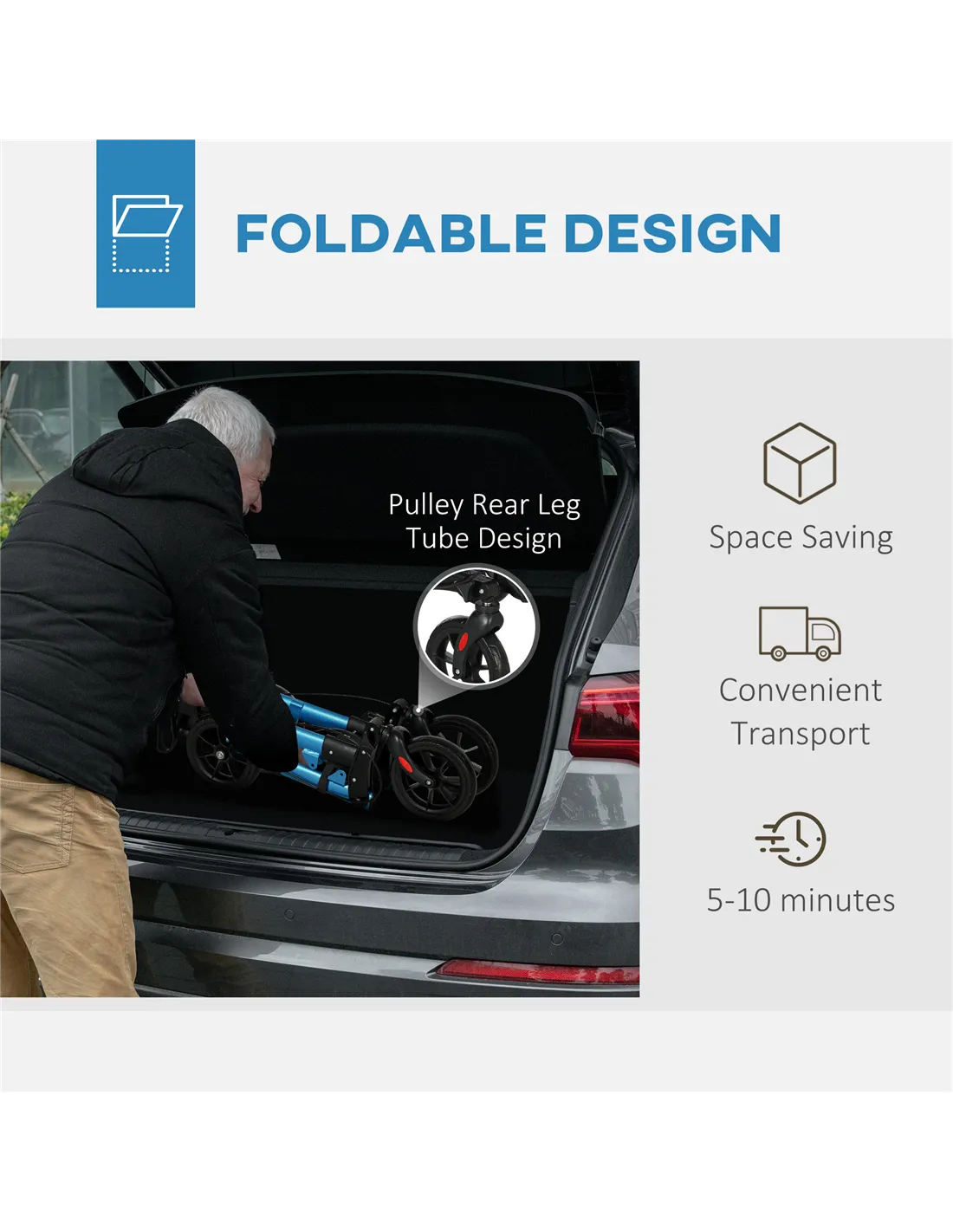 - Lightweight but stable aluminium frame ensures easy manoeuvrability