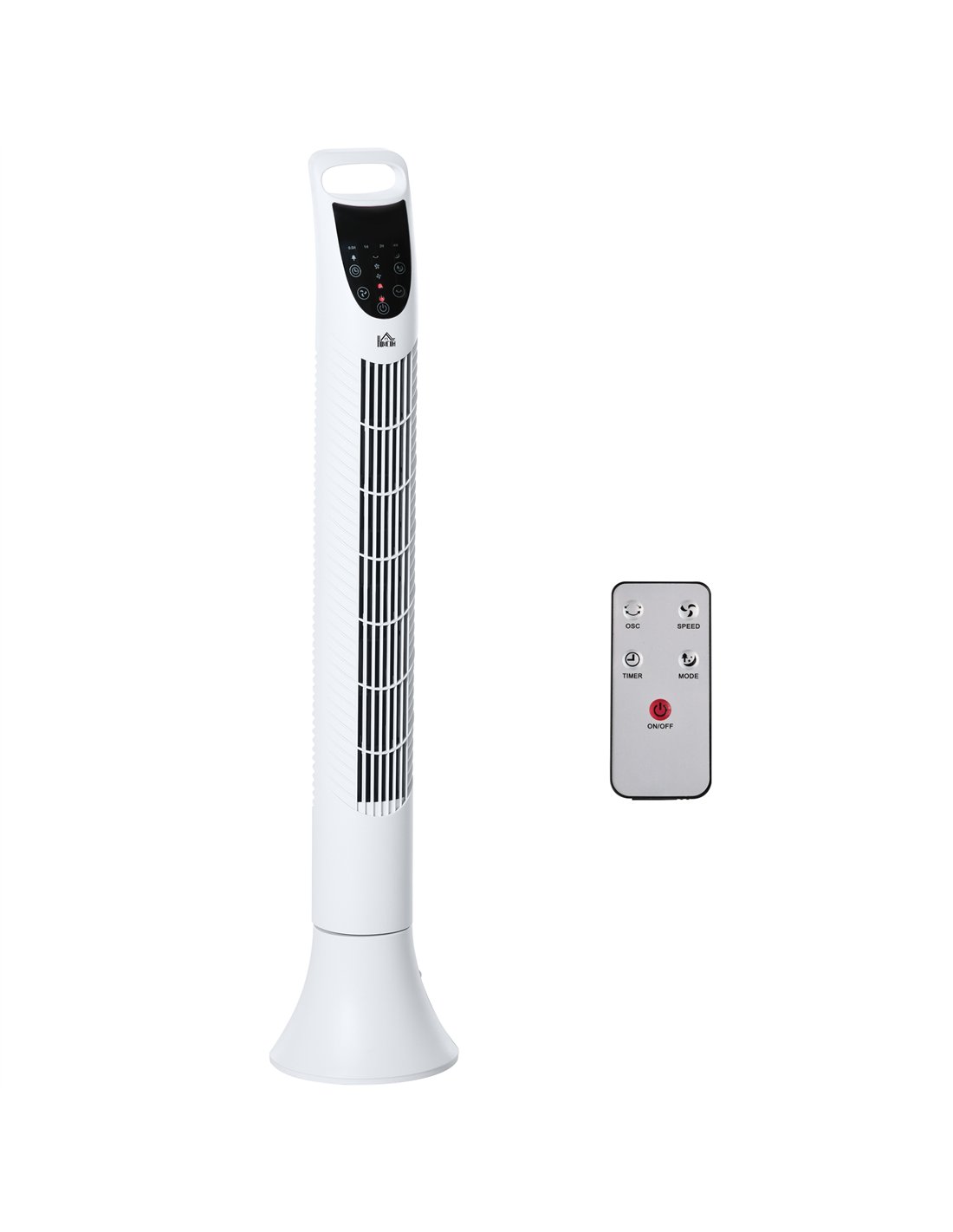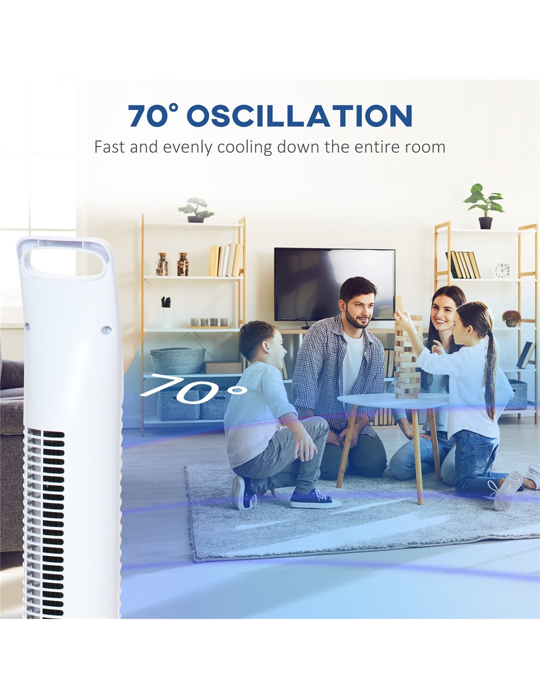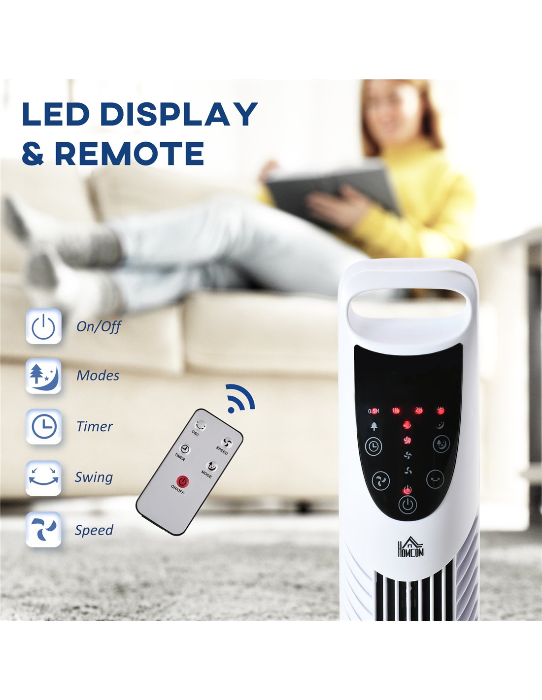 HOMCOM 36'' Freestanding Tower Fan, 3 Speed 3 Mode, 7.5h Timer, 70 Degree Oscillation, LED Panel, 5M Remote Controller, White